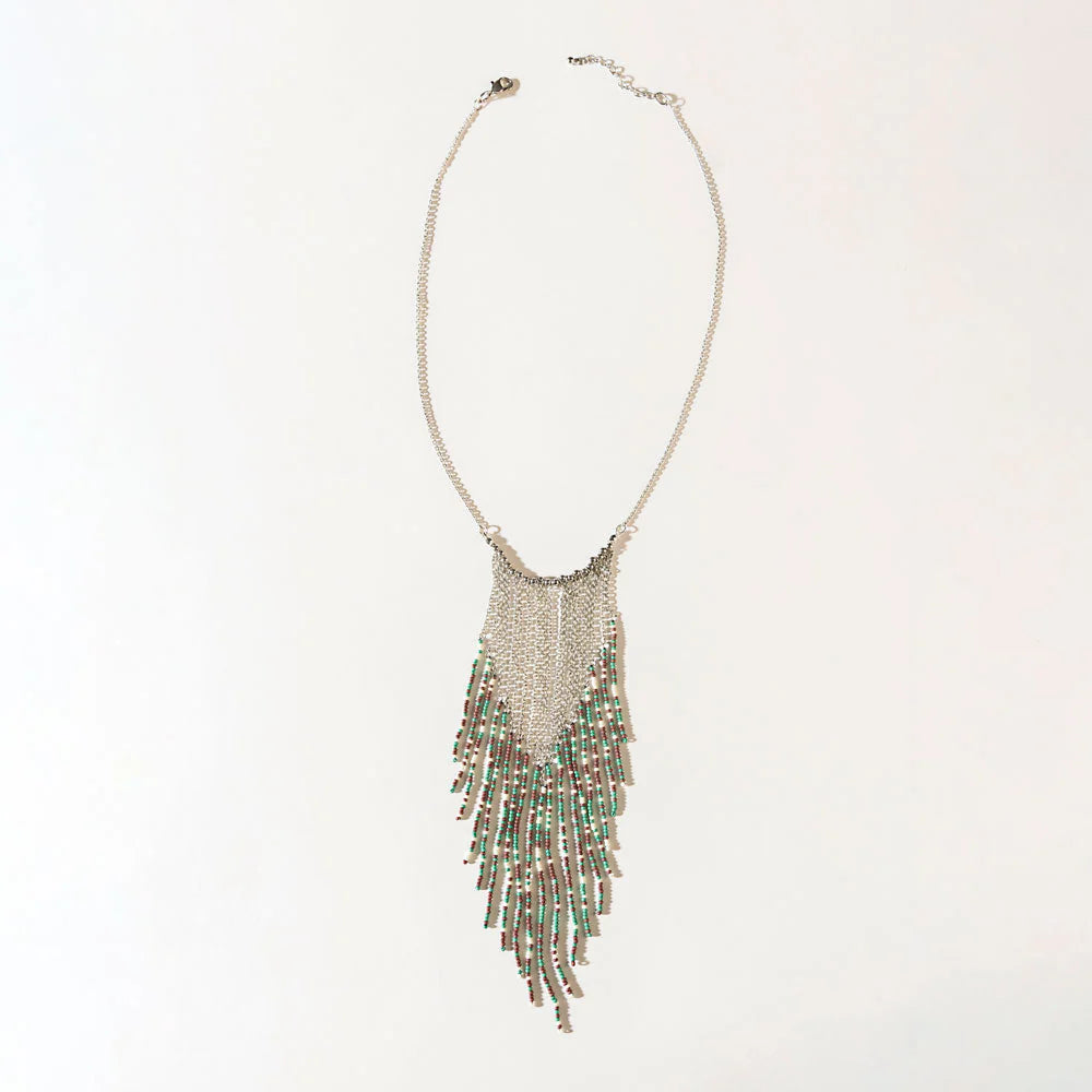 S-13080 Western Silver Beadwork Necklace Northern Lights in Frosted Silver