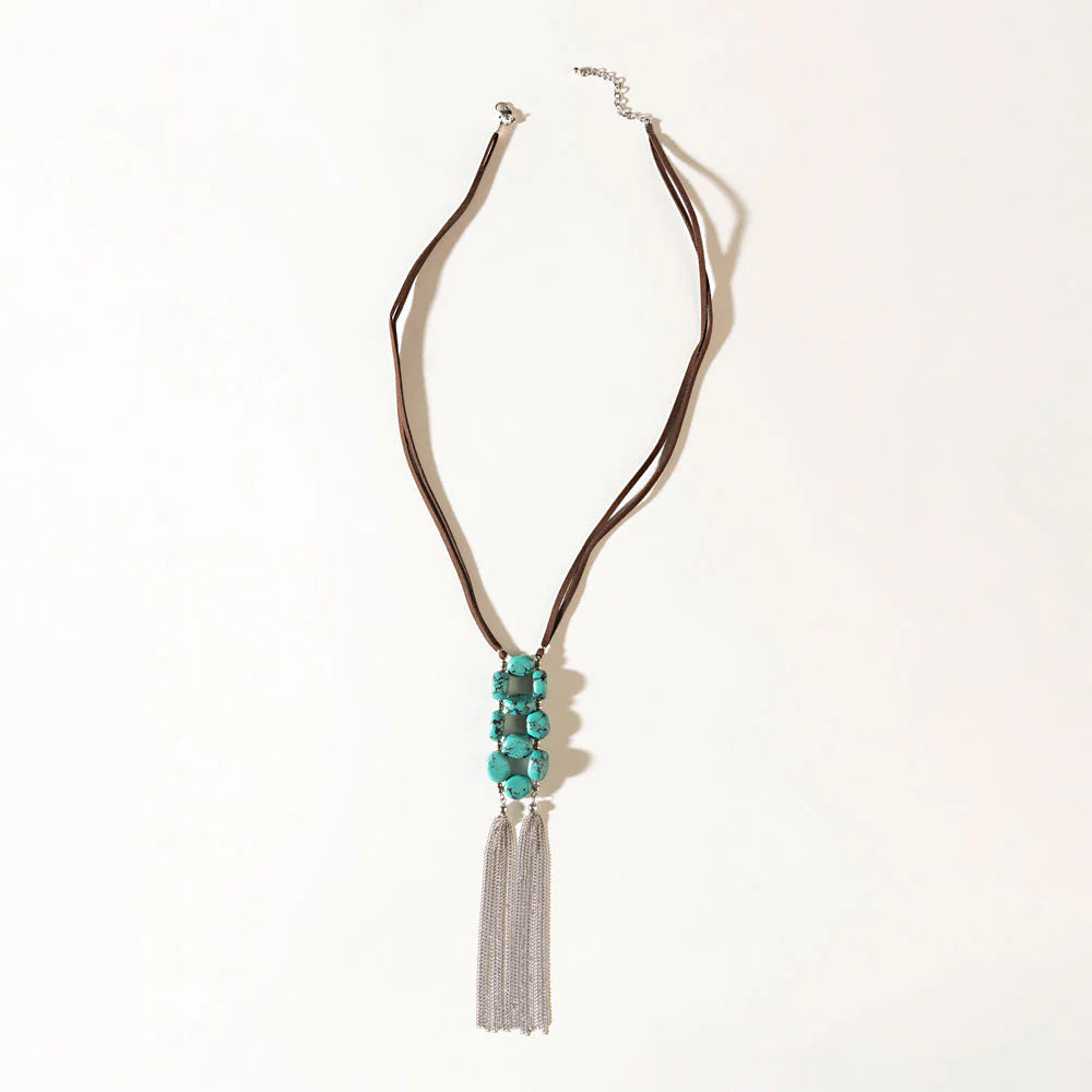 S-13081 Western Silver Turquoise Beaded Necklace Desert Dancer in Silver Bloom
