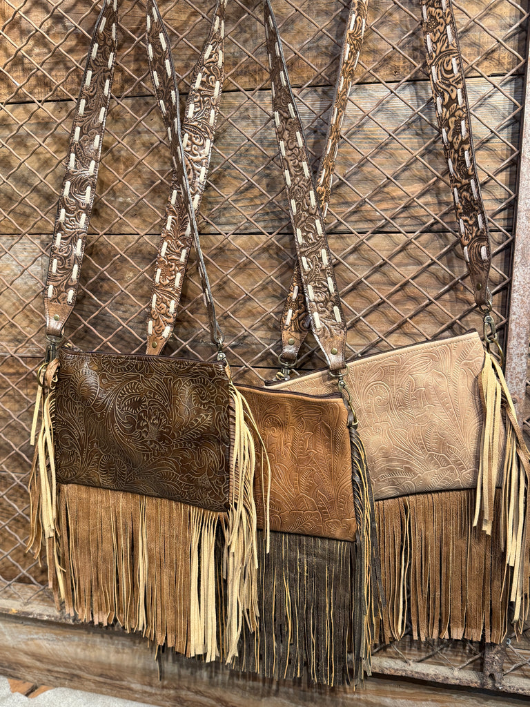 Western Embossed Leather Maxine Crossbody Bag with Fringe Purse Keep It Gypsy
