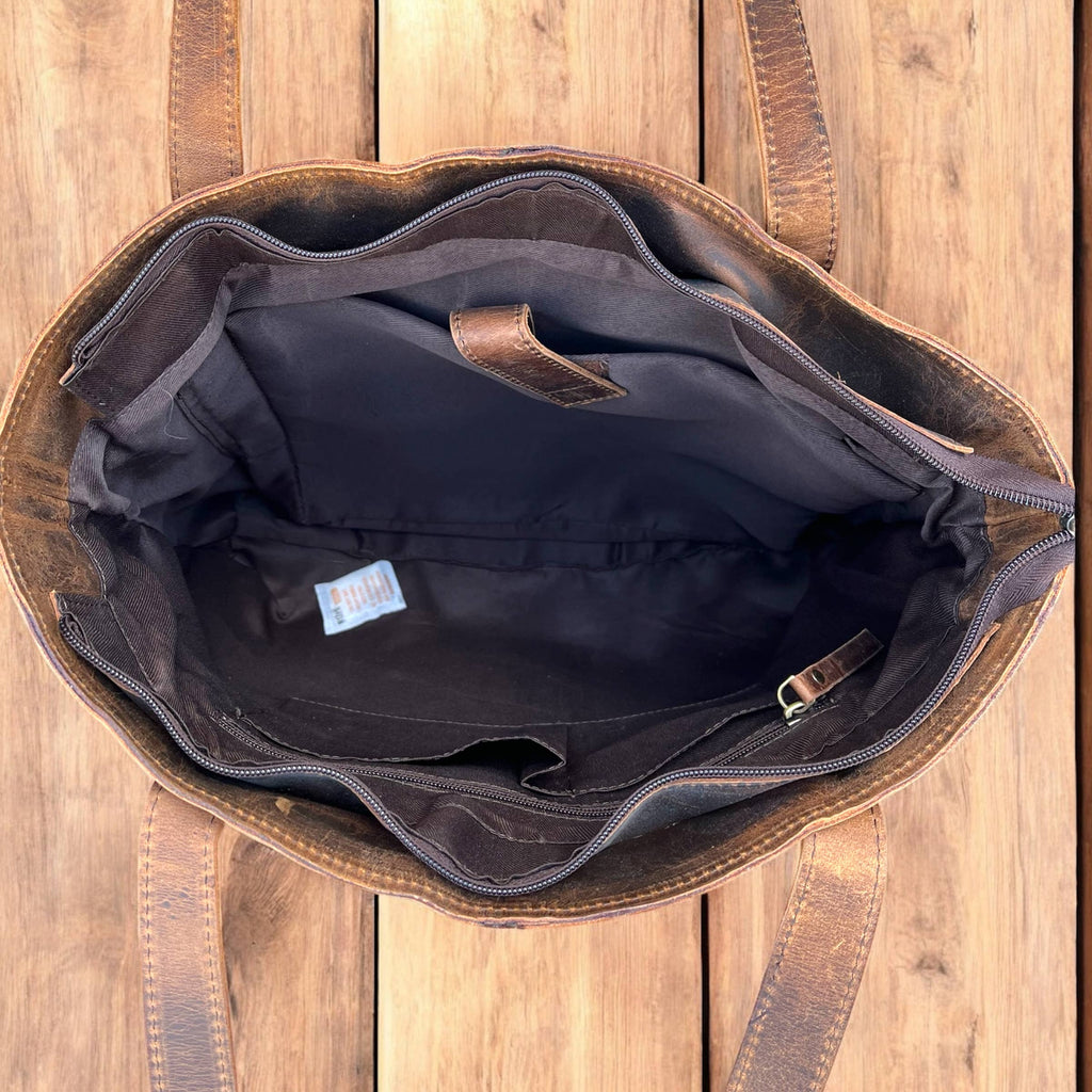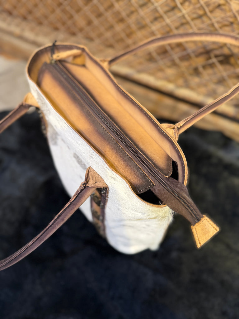 Introducing our Western Hand Tooled Leather and Cowhide Tote Bag, a perfect blend of rustic charm and modern functionality. Each bag is meticulously crafted from high-quality leather, featuring intricate hand-tooled designs that showcase true artisan skill. The genuine cowhide accents add a touch of rugged elegance, making each piece unique with its natural variations.