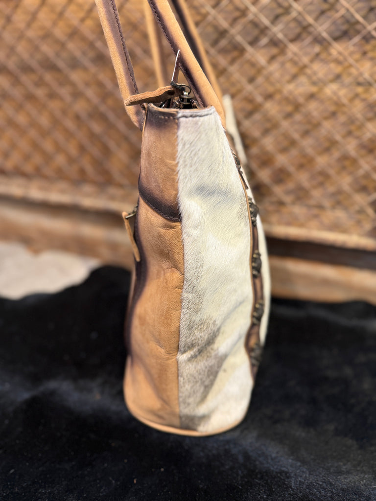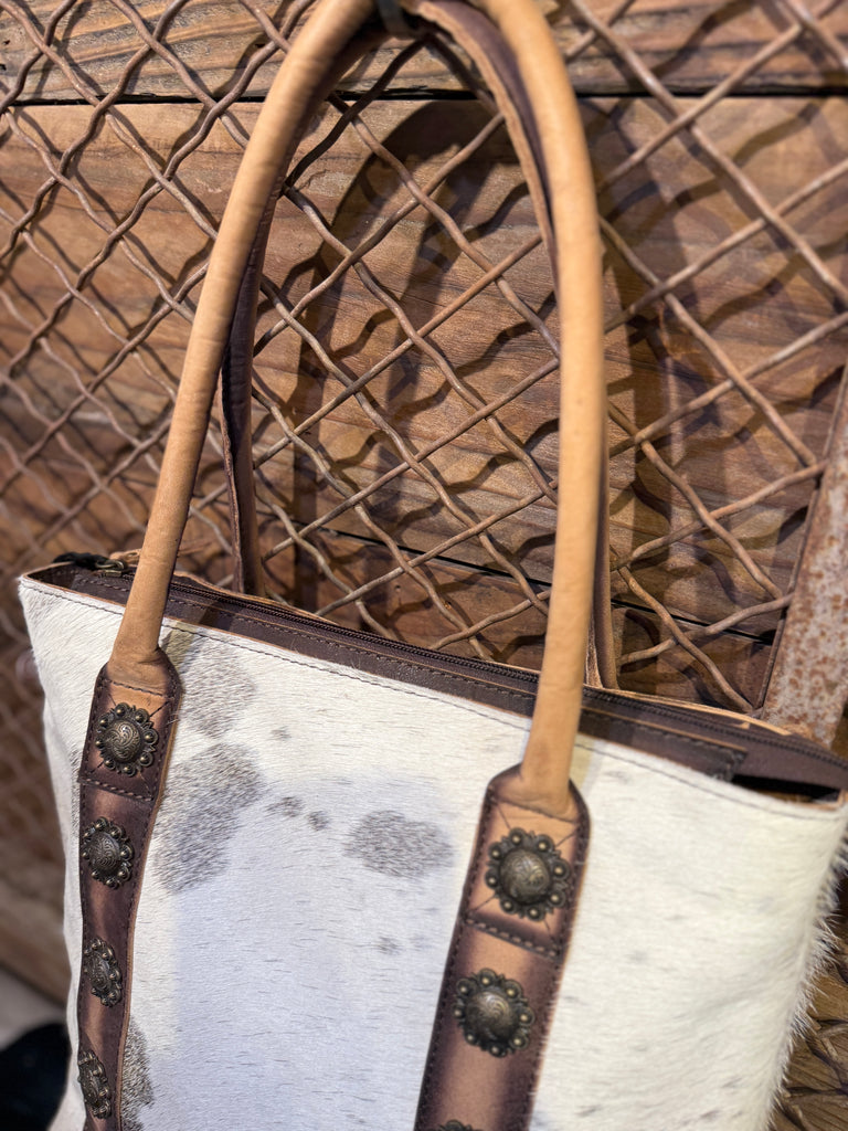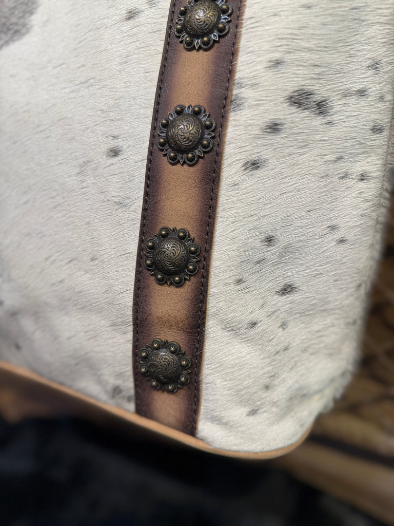 Western Cowhide & Conchos Leather CCW Concealed Carry Shoulder Bag Purse Tote