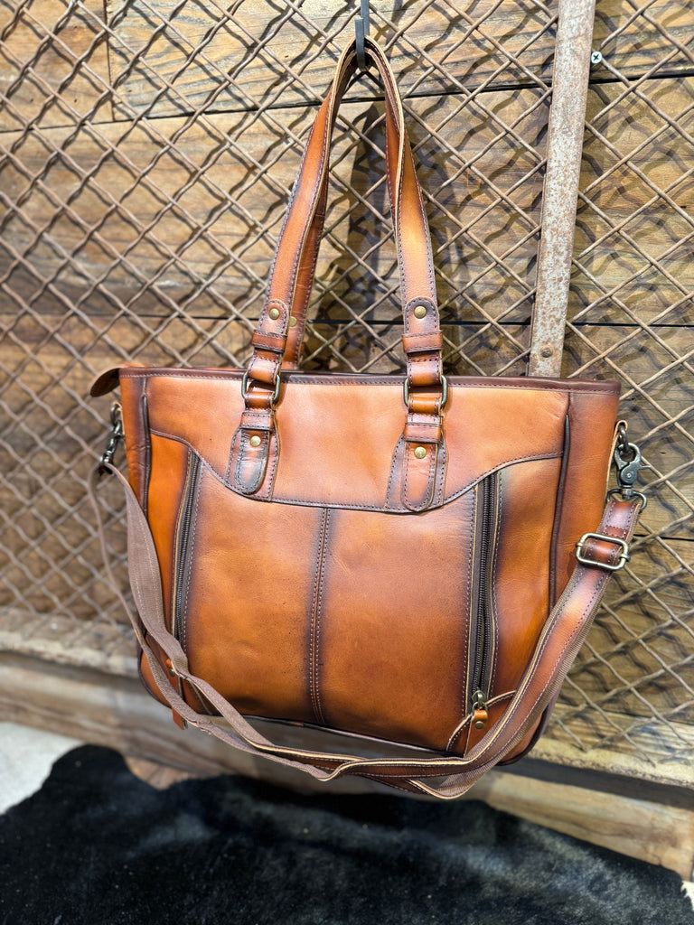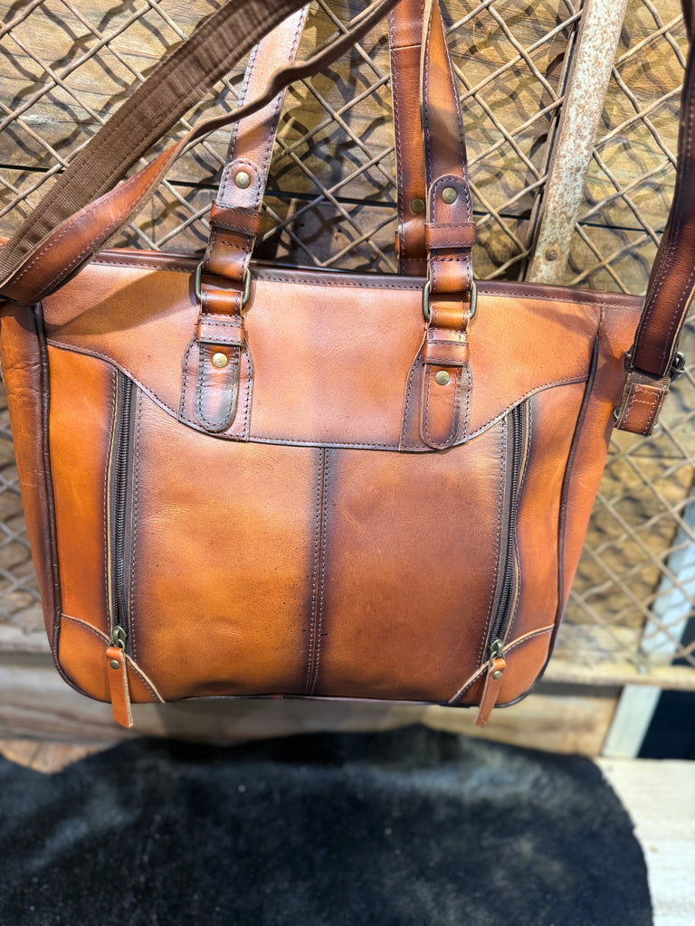 Large Western Crossbody Rustic Tooled Leather Cowhide CCW Concealed Carry Purse Bag Tote