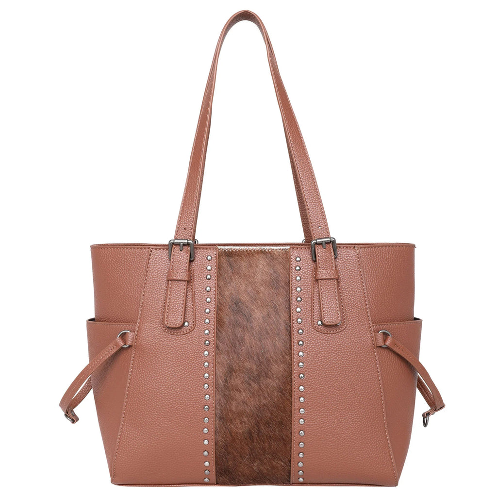 TR132G-8317 CCW BROWN Cowhide Leather Studs Collection Concealed Carry Tote Purse Bag