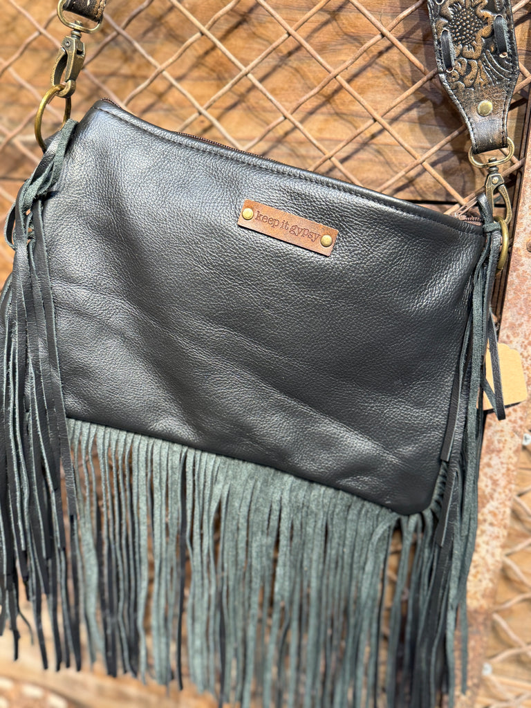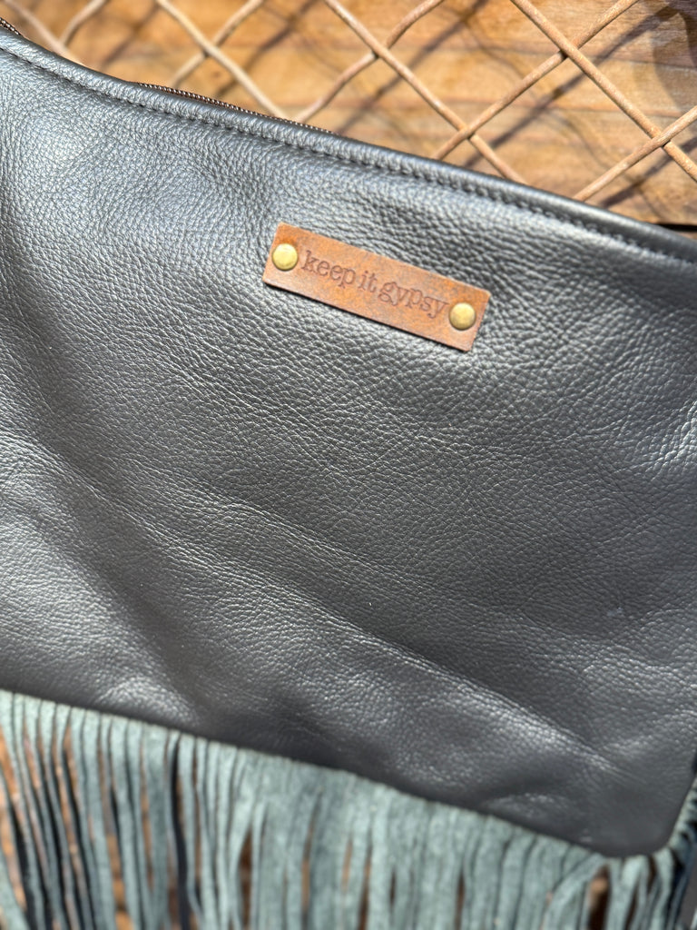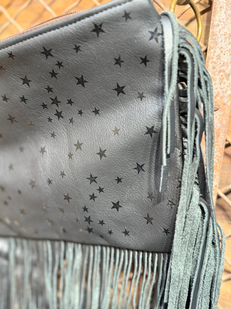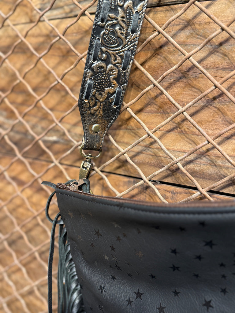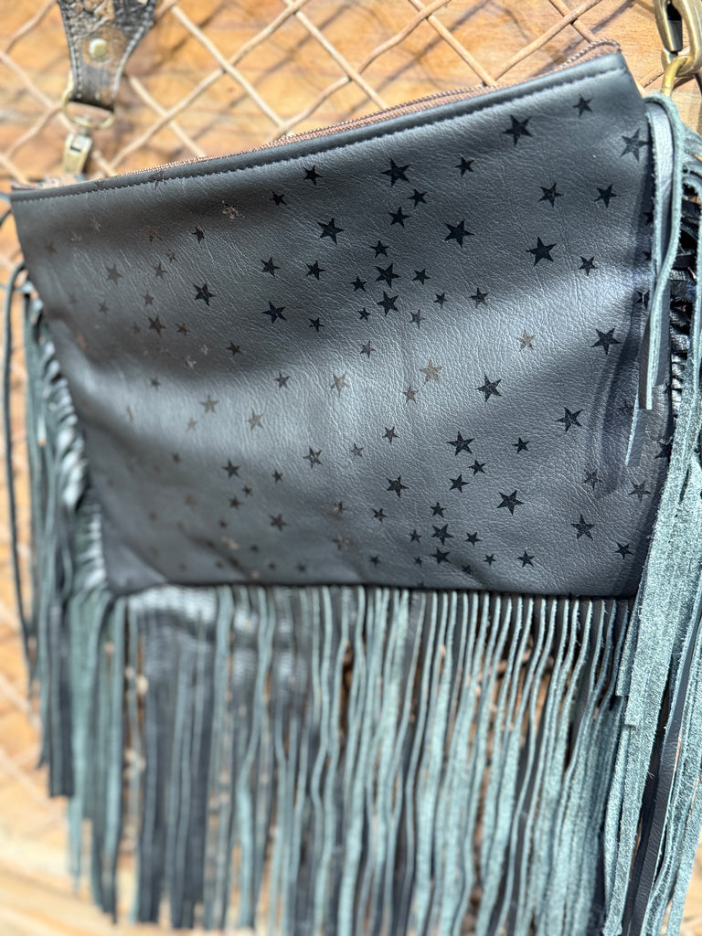 Black Stars Leather Maxine Crossbody Bag with Fringe Purse Keep It Gypsy