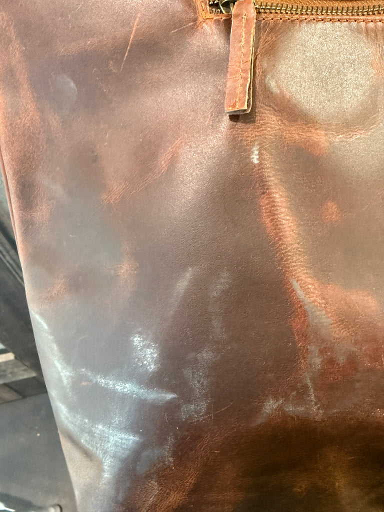 SB-2057-A Leffis Leather Cowhide Brown Red Purse Shoulder Tote Bag, sold as is, has some rub spots on back, could come out with some leather conditioner. Not super noticeable. No returns.
