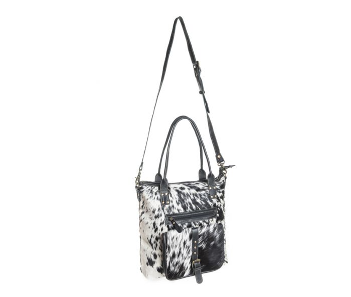 S-10817 Cowhide Leather Crossbody Tote Bag Purse Mesa Maverick Black White