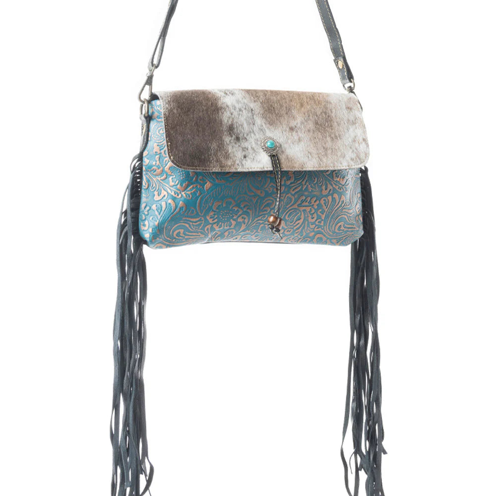 S-3958 Cowhide Embossed Tooled Leather Crossbody Purse Bag Rococo