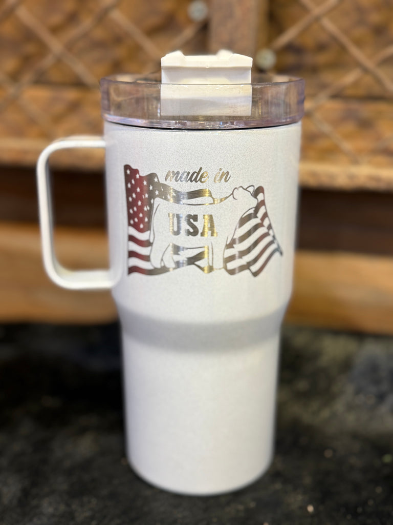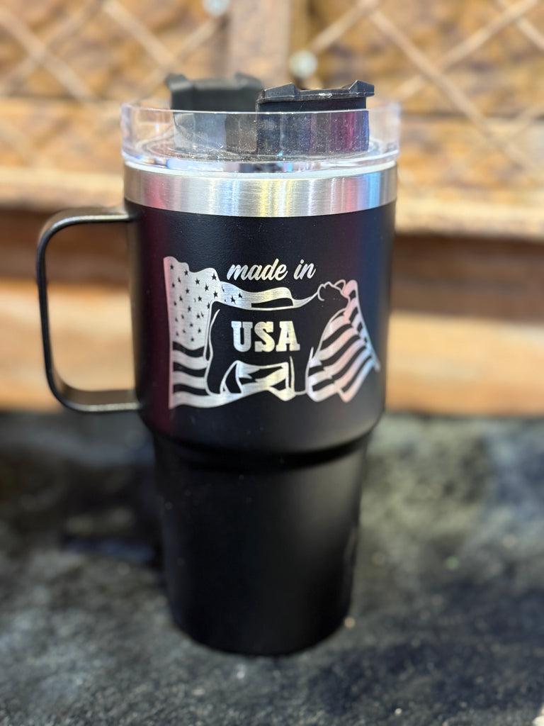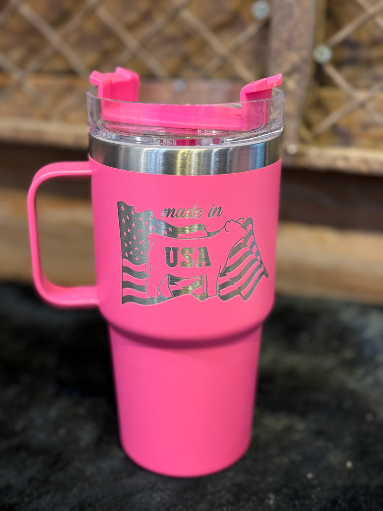 Custom Laser Engraved MADE IN USA Livestock Show STEER Beef 20oz Tumbler with Handle