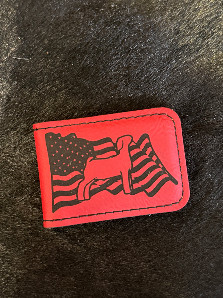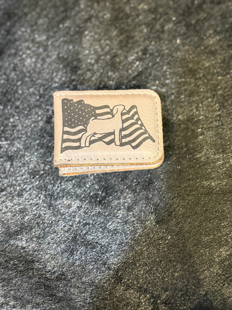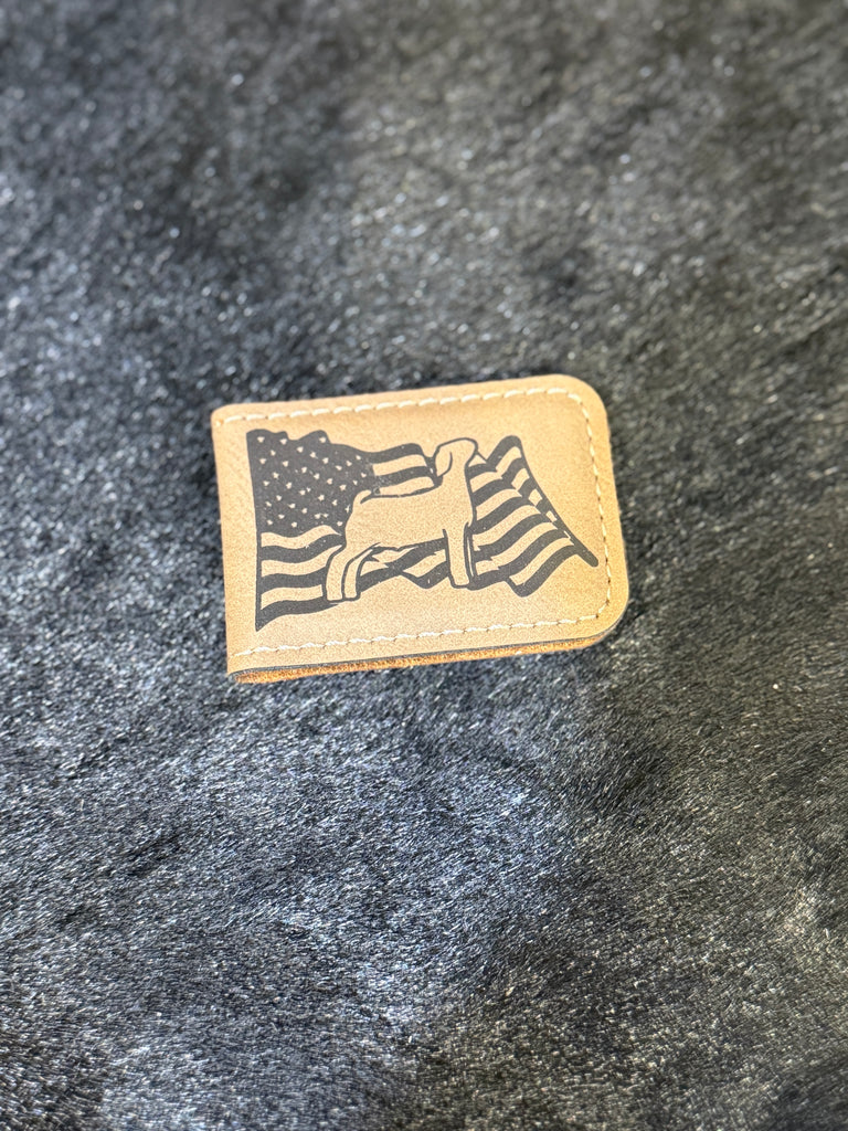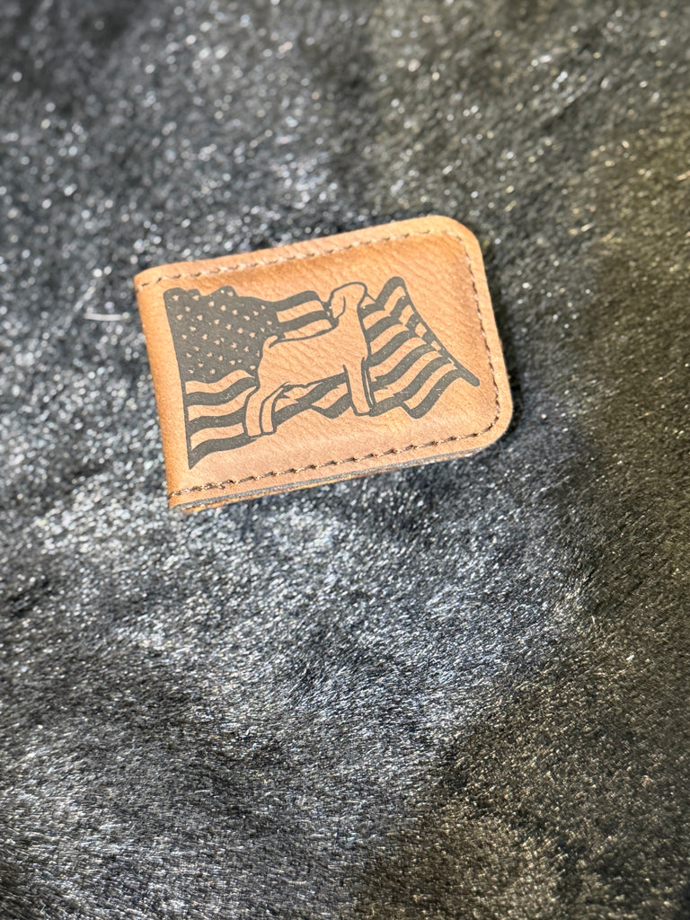 Custom Laser Engraved SHOW GOAT AMERICAN FLAG Leatherette MONEY CLIP