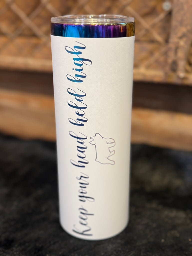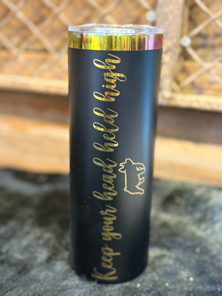 Custom Laser MIRROR OIL SLICK Engraved KEEP YOUR HEAD HELD HIGH Livestock Show PIG 20oz Tumbler
