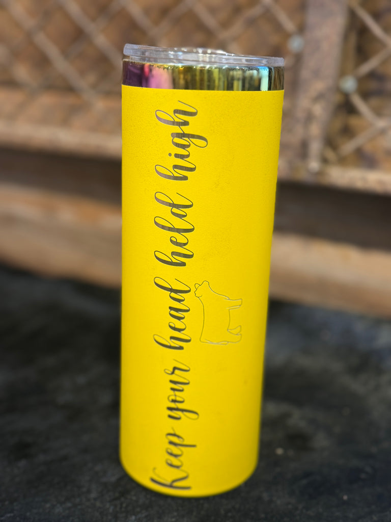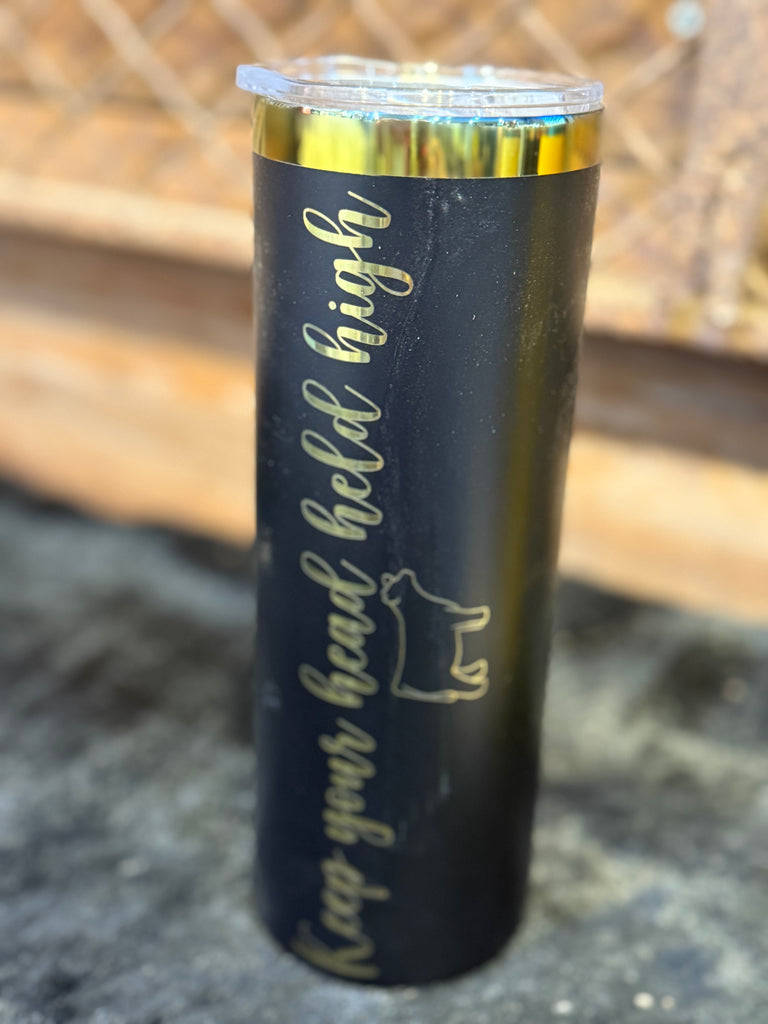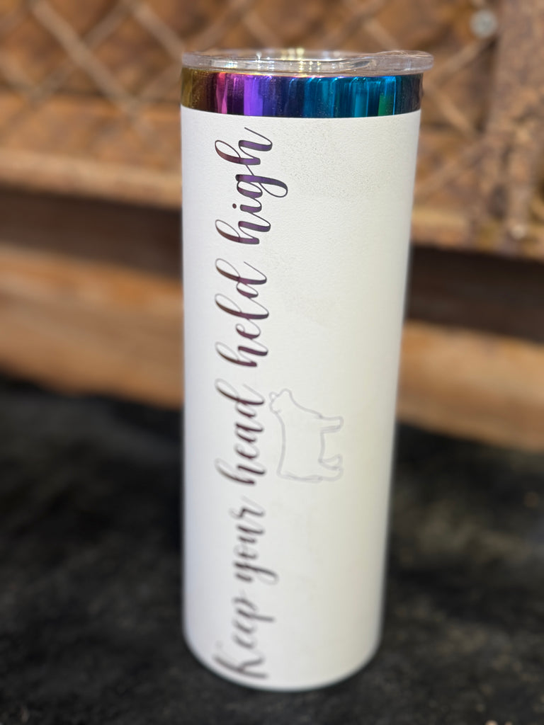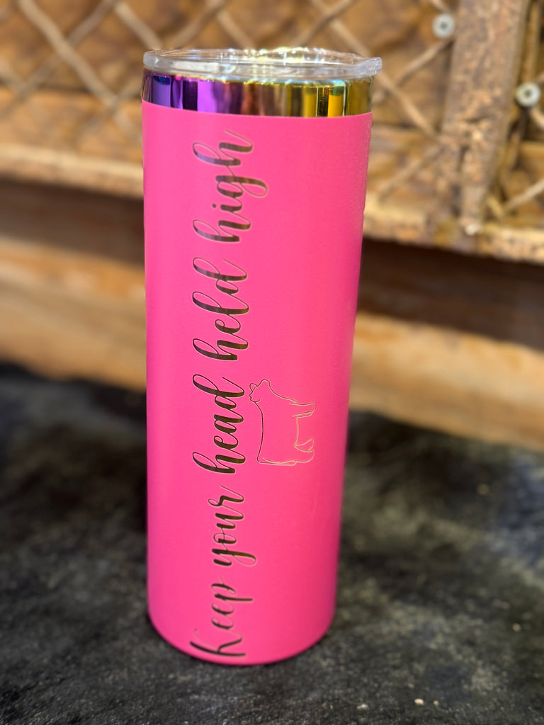 Custom Laser MIRROR OIL SLICK Engraved KEEP YOUR HEAD HELD HIGH Livestock Show STEER Beef 20oz Tumbler