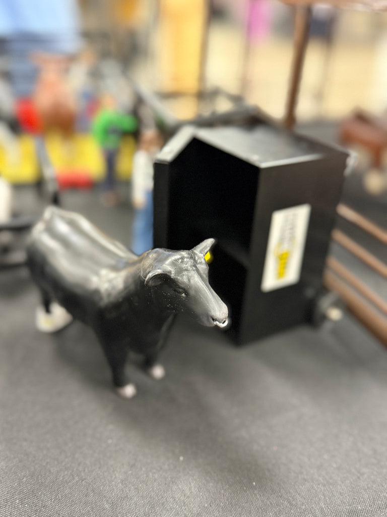Livestock Steer Black Metal Rolling SHOW BOX Upright with Dolly Little Buster Toys Livestock Jackpot Farm Show Animal