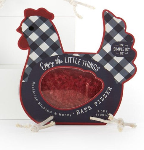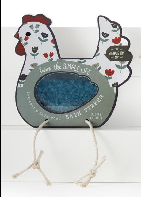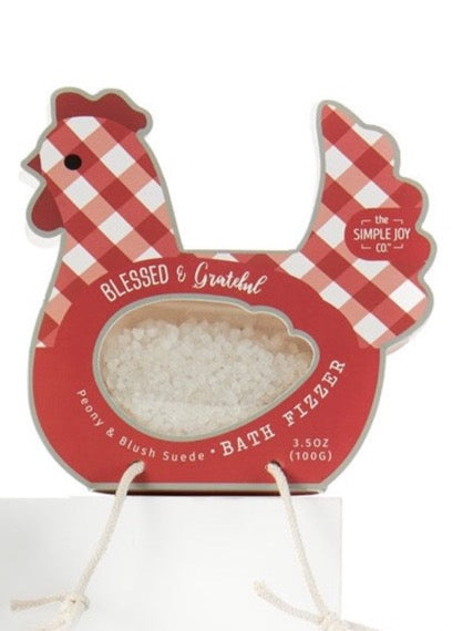 Take the stress of the day away with these lovely scented 3.5oz bath salts in a cute little Chicken box with tied string legs.