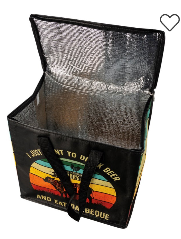 I Want to Drink Beer & BBQ Eat Barbeque Insulated Tote Cow Pig Chicken Grilling Meat