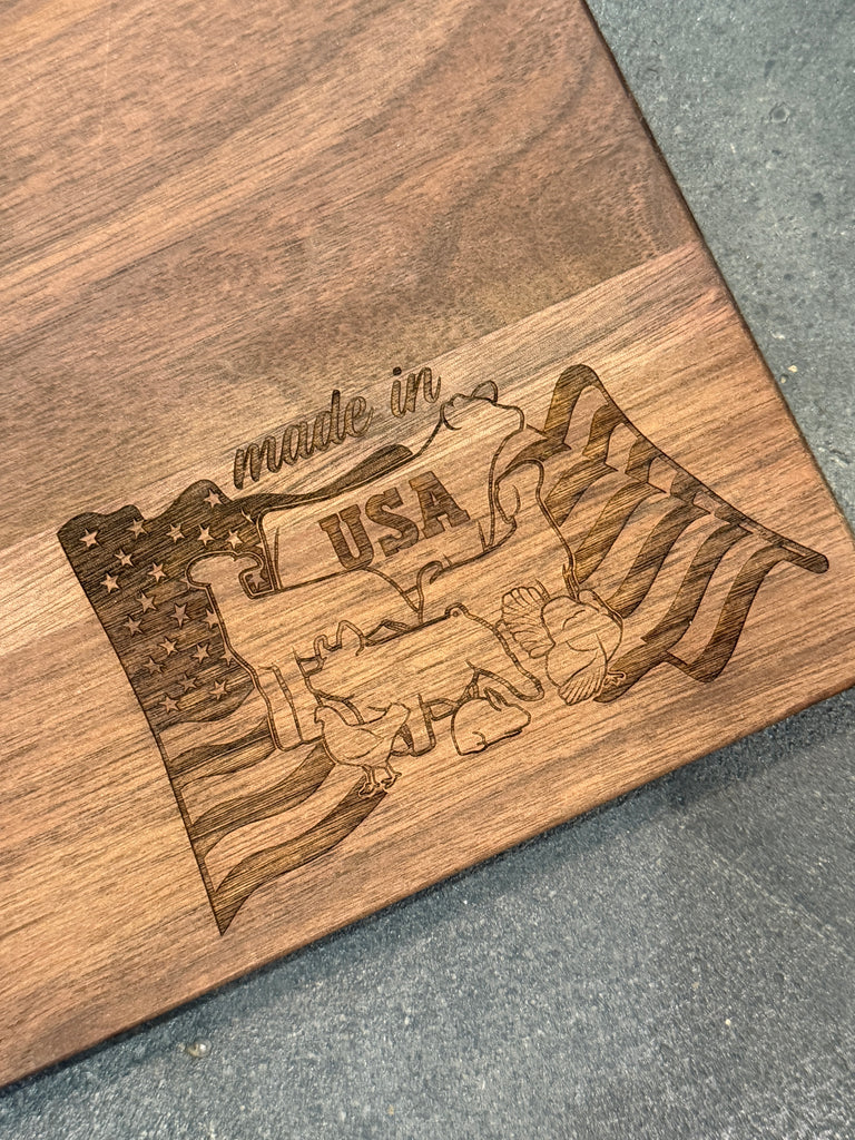 Custom Laser Engraved Walnut 18" x 12" Board with a GOAT, SHEEP, PIG, STEER, RABBIT, CHICKEN or anything else you might need. Custom Laser in house and ready in a day.