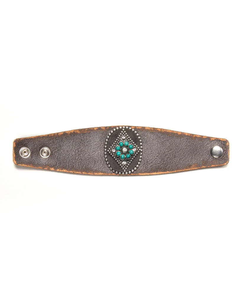 Silver Turquoise Leather Mystic Diamond Bracelet Cuff Cowgirl Confetti CCCUF12
