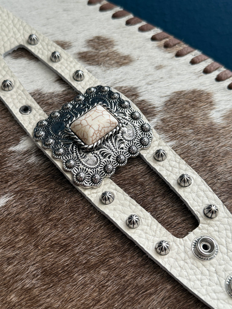 Silver White Howlite Leather Bracelet Cuff Cowgirl Confetti