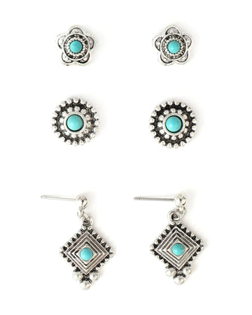 Western Silver Turquoise Mood Setter 3 Pairs Earrings Jewelry Cowgirl Confetti CCERR100