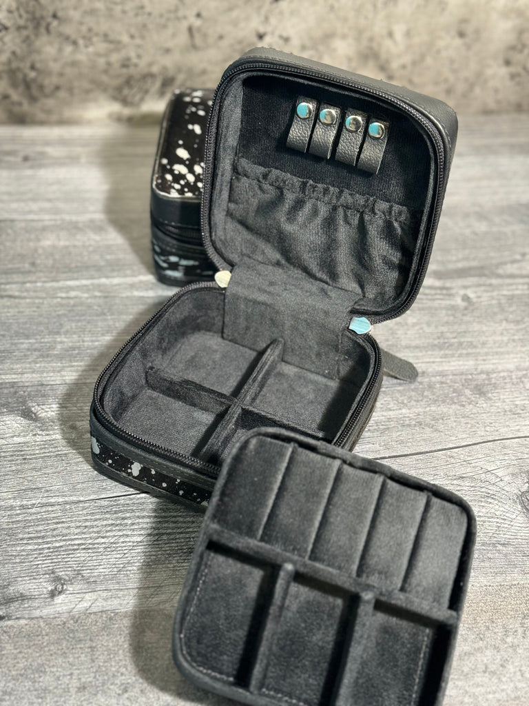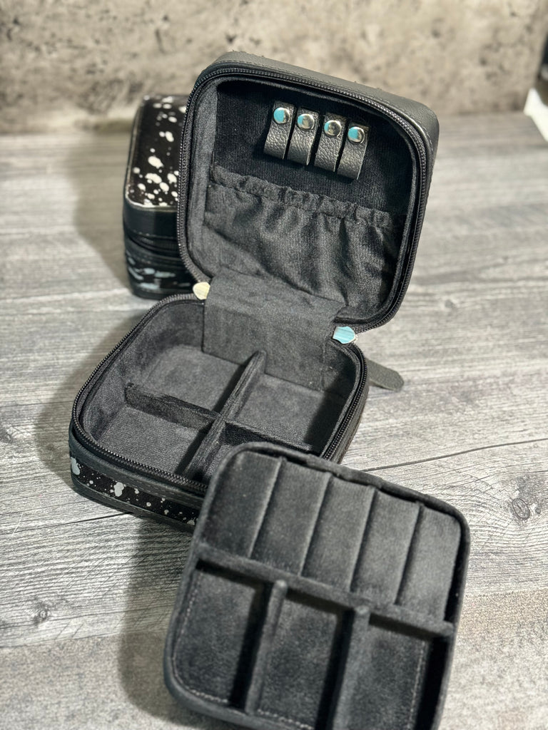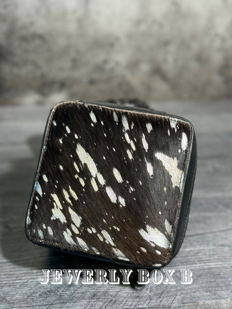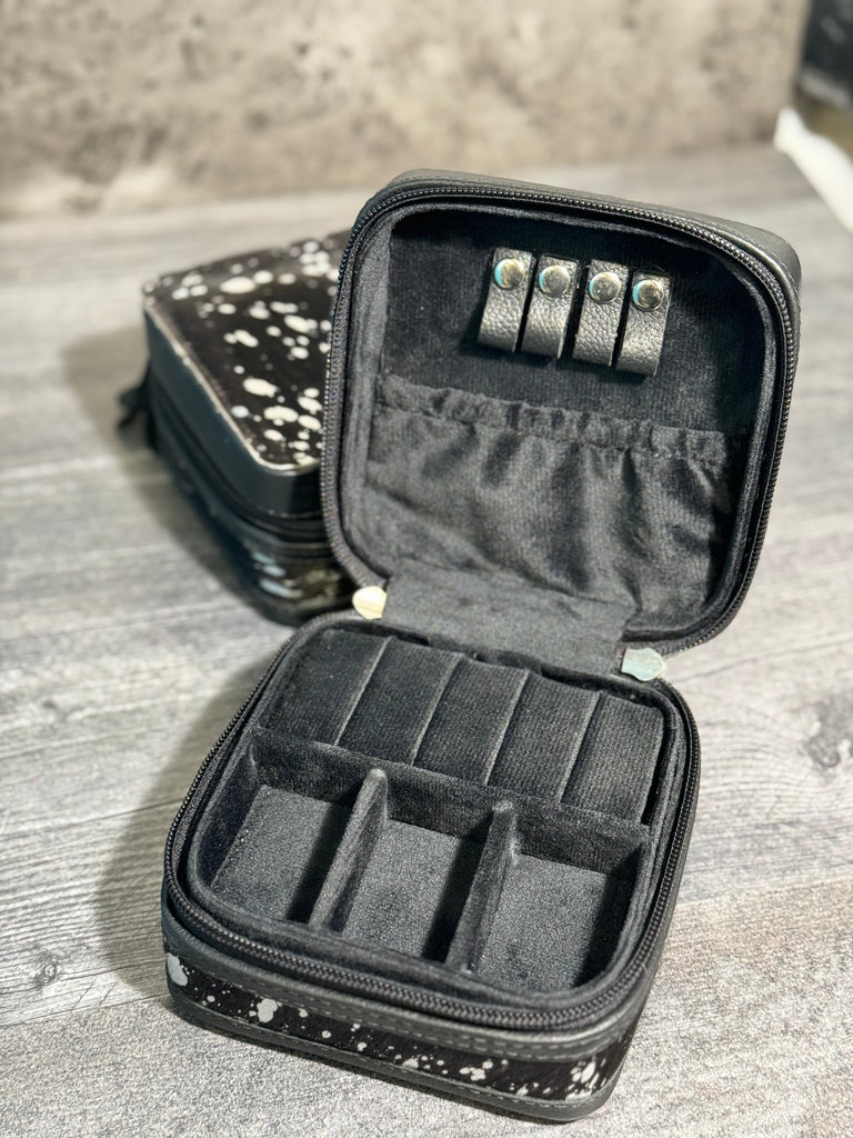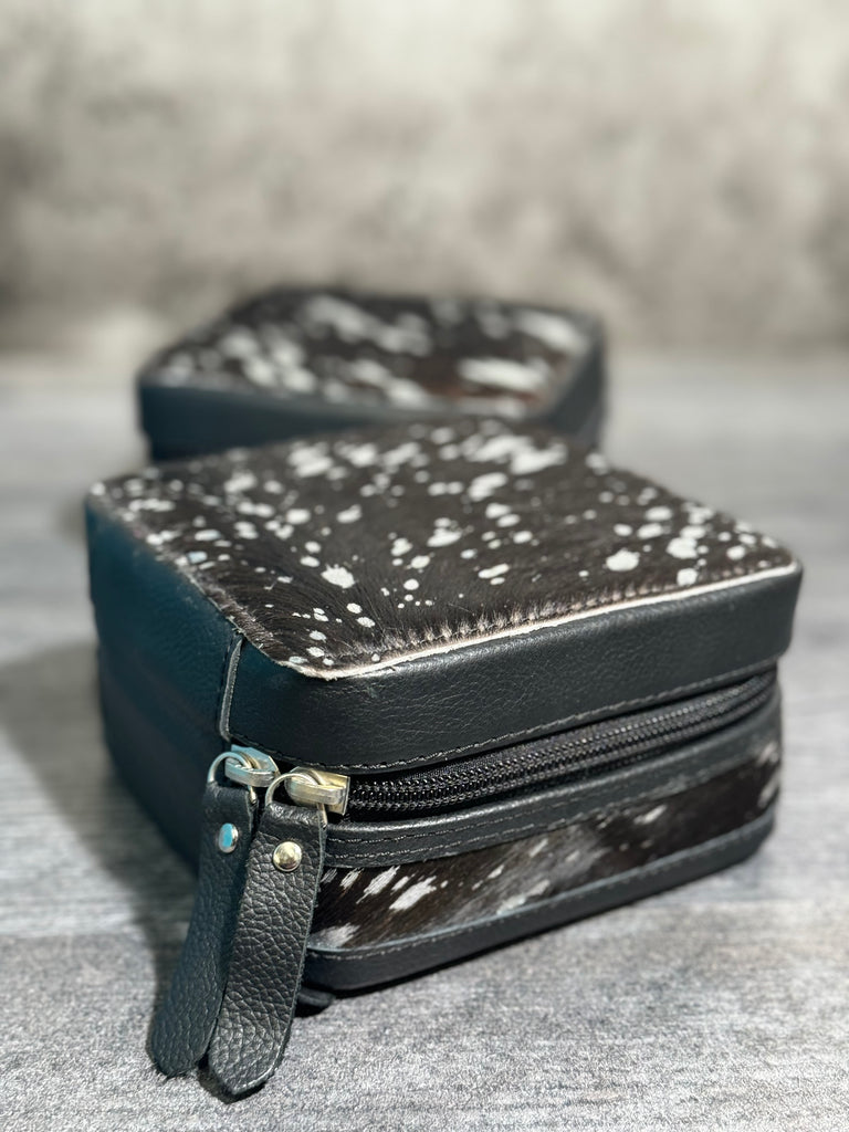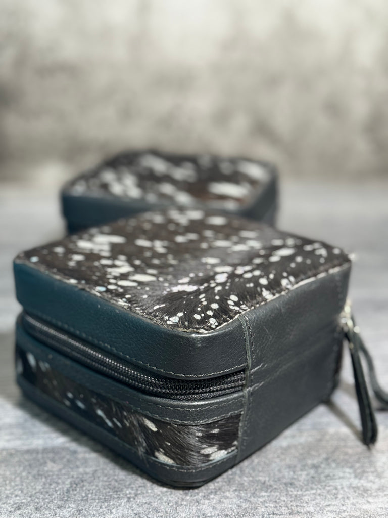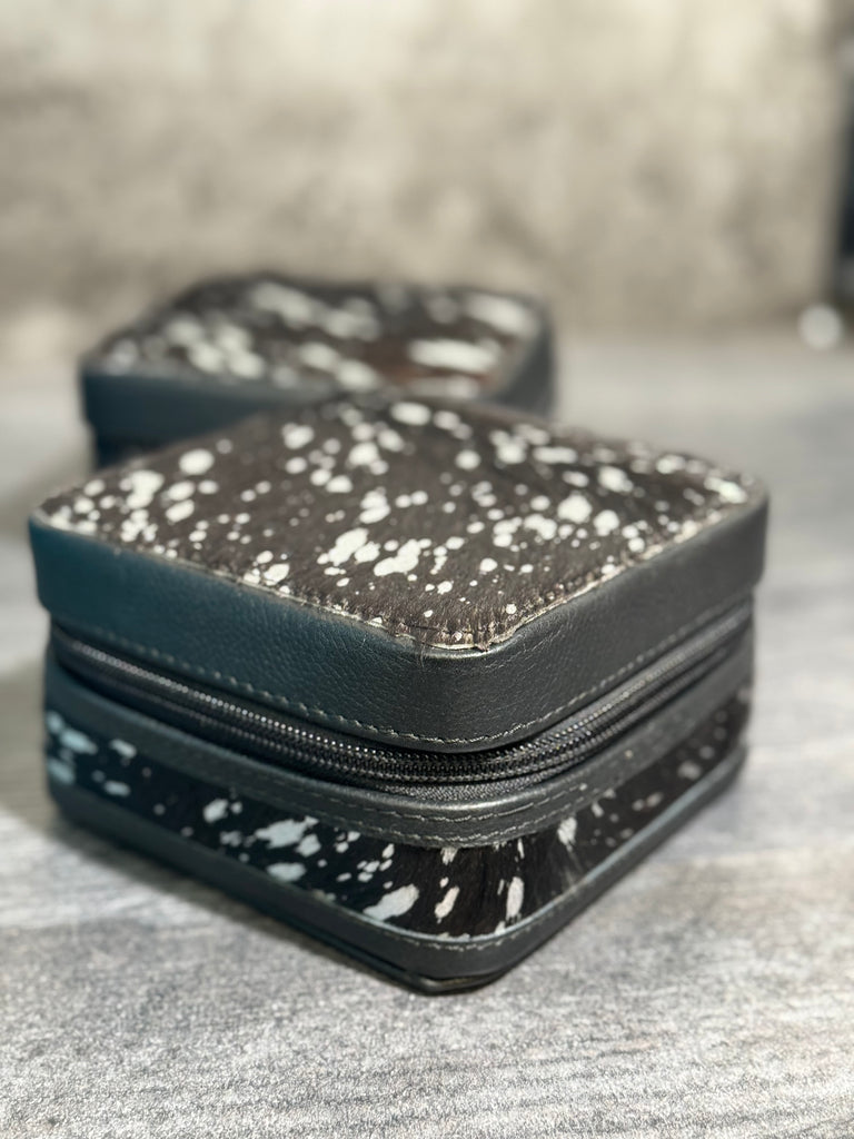 Black & Silver Cowhide & Leather Square Jewelry Travel Box