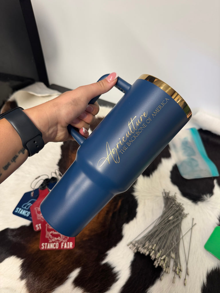 Custom Laser Engraved FFA Blue & Gold 40oz TUMBLER Engraved with Agriculture - The Backbone of America.