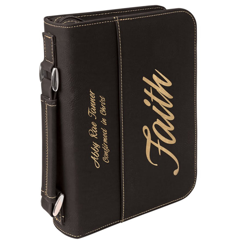 Cheyenne can custom engrave anything on the Bible cover. It’s $38 with the front engraved, it would be an additional charge of $8 if you want to add a name to the back.