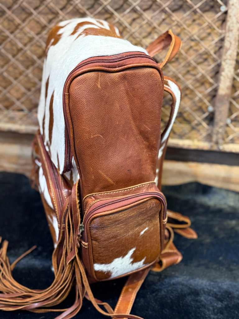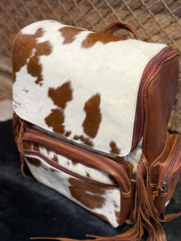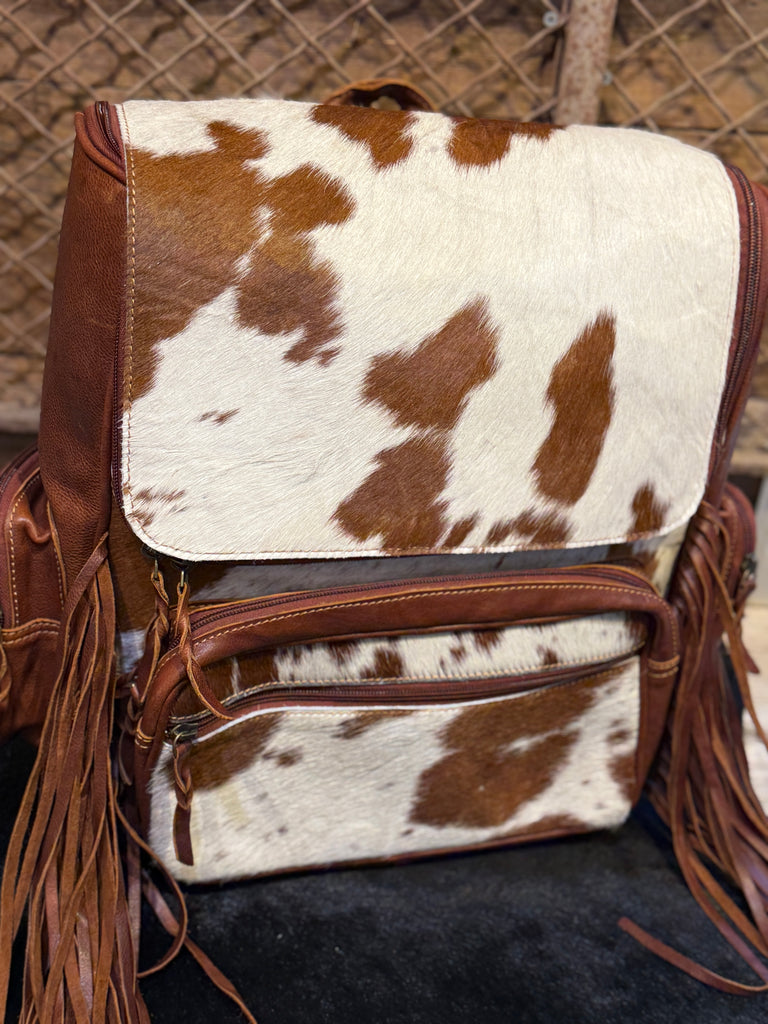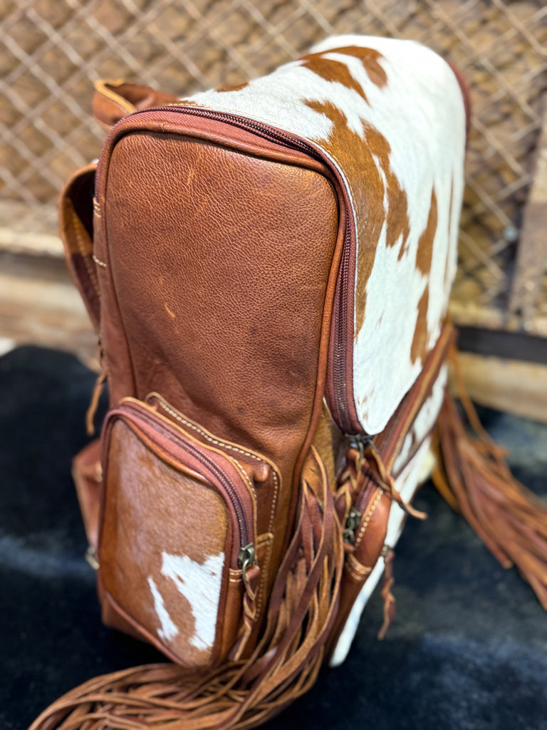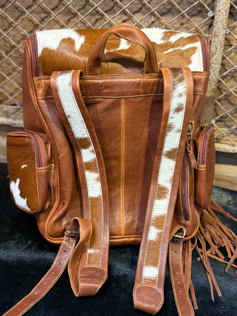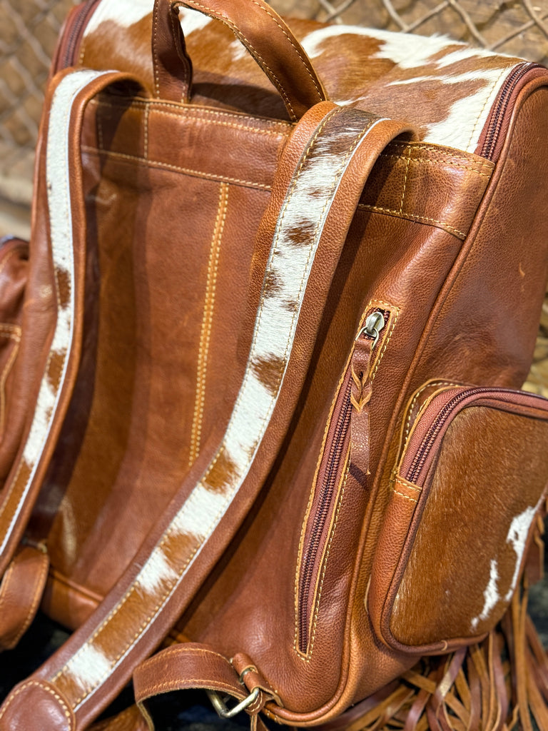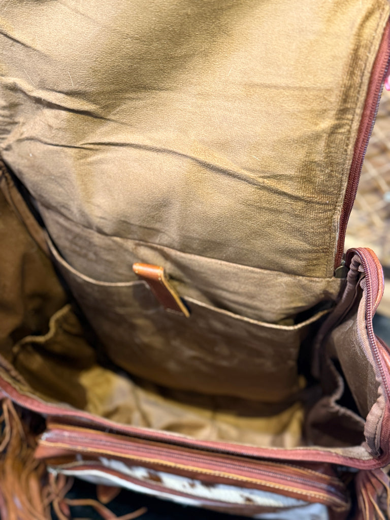 1B Tan Premium Leather Cowhide with Fringe CCW Concealed Carry Backpack Oversized