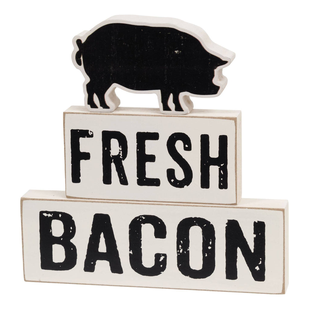 3 Piece Set Fresh Bacon Stacking Blocks Wood Sign Decor