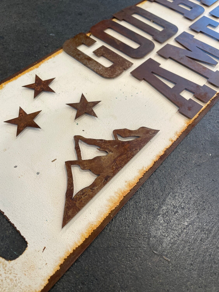 50% OFF 39" Custom GOD BLESS AMERICA Metal Banner Sign