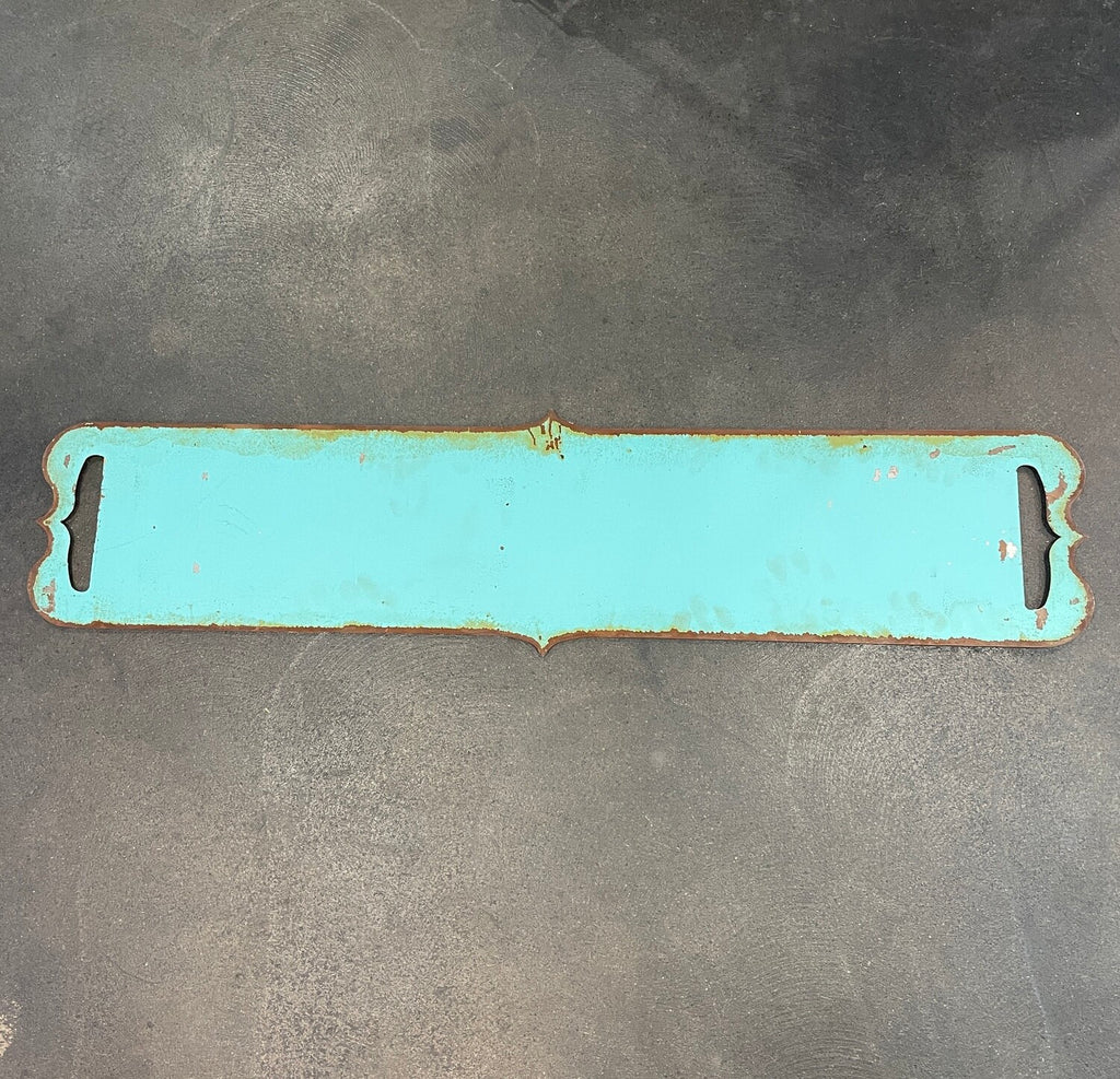 39" x 10" Custom Made double sided metal banner with God Bless America with rustic metal letters on magnets. The custom made metal banner is a distressed ivory on one side and turquoise on the other. You can change these letters through the year by purchasing additional letters and symbols.