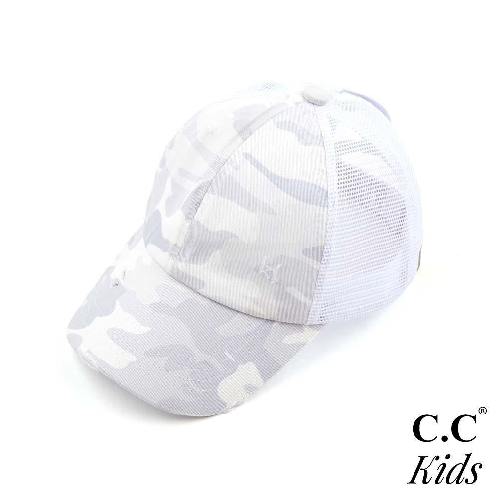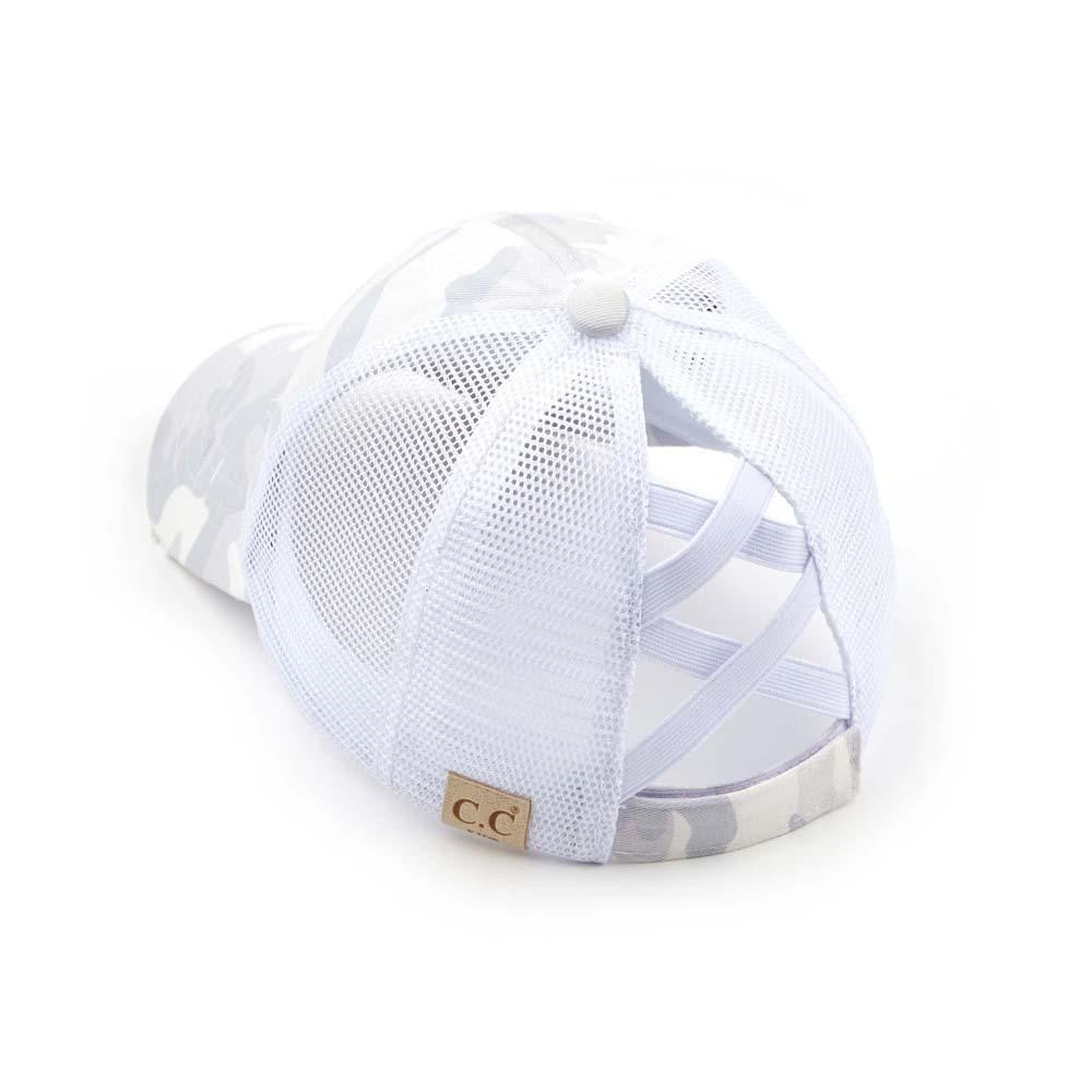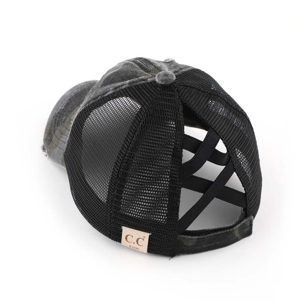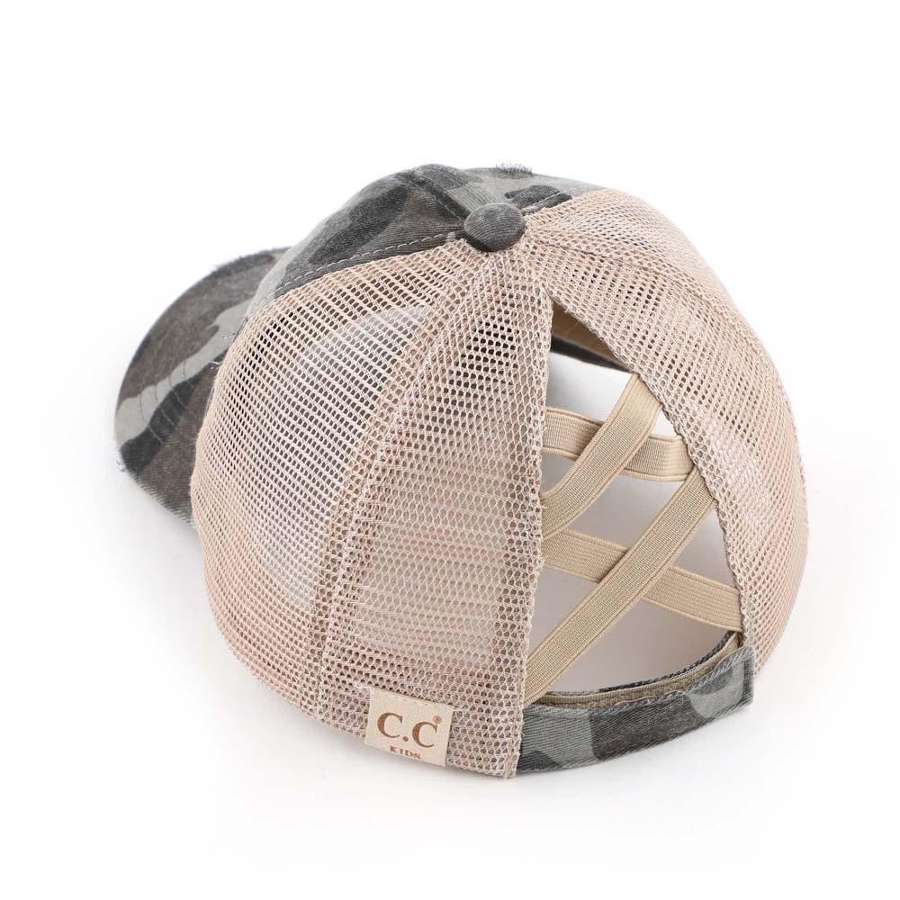 CC Criss Cross CAMO Distressed Ponytail Messy Bun Hat