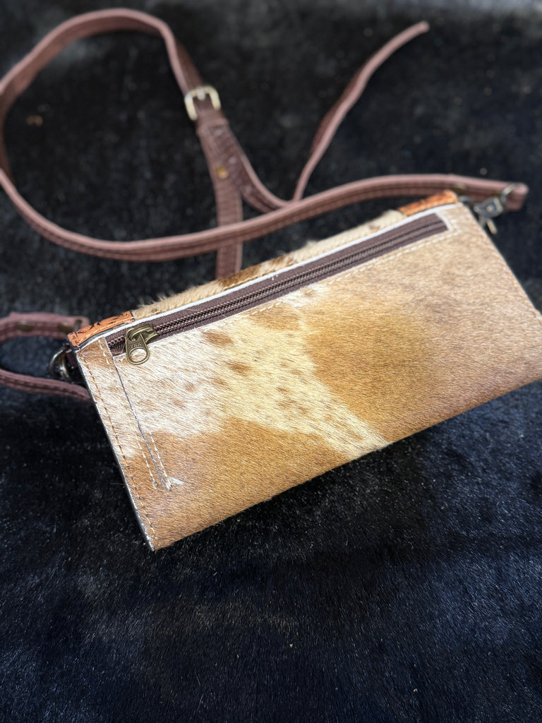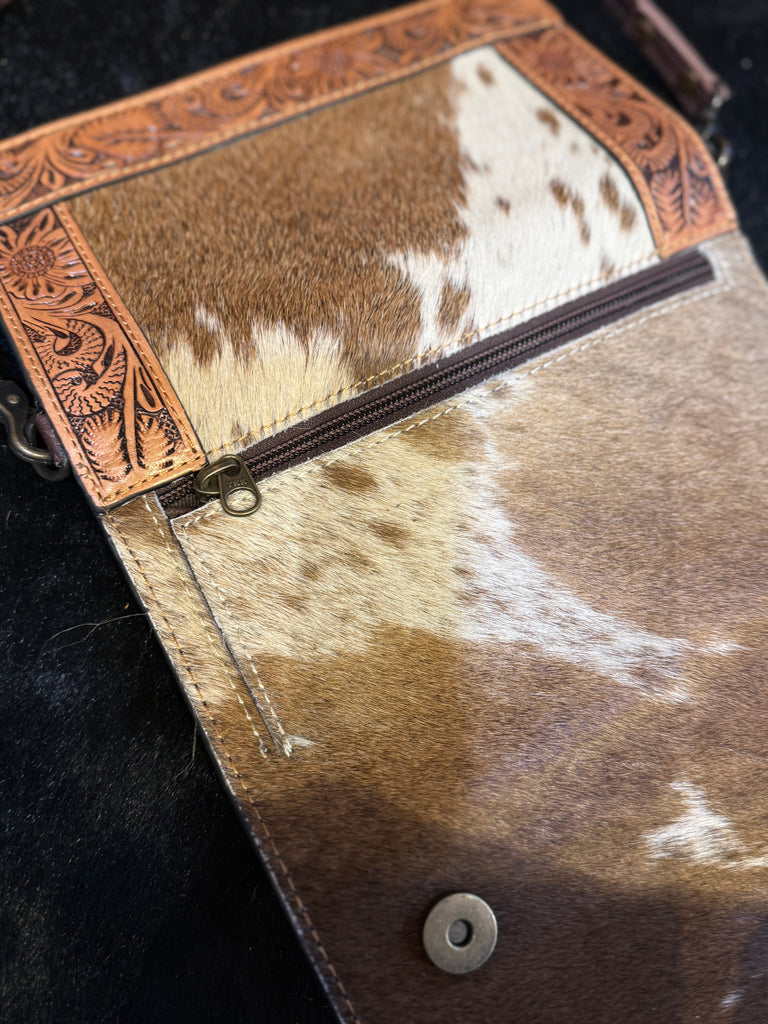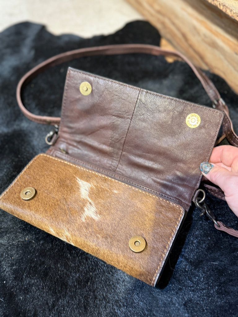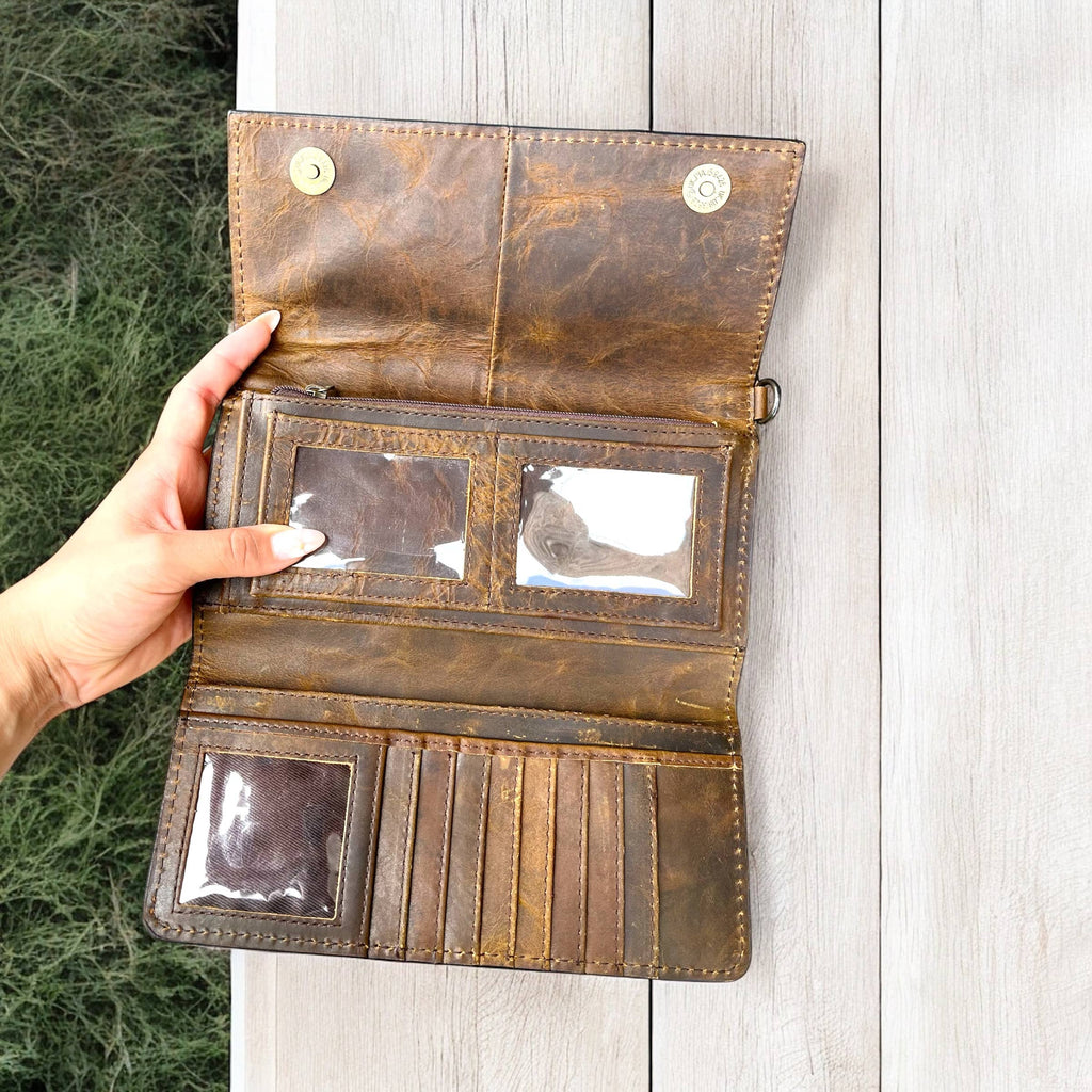 1A Western Hand Tooled Leather Cowhide Wallet Crossbody Bag