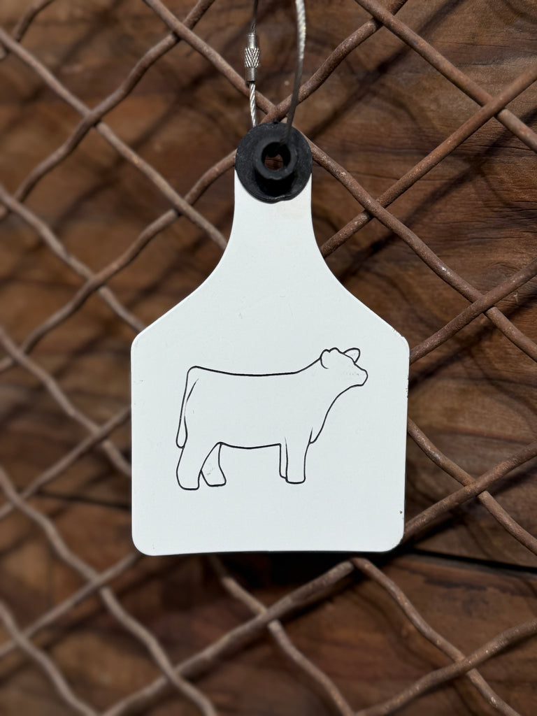 White Custom Laser Engraved SHOW ANIMAL Cowtag Livestock Tag Beef Steer Pig Swine Lamb Sheep Goat