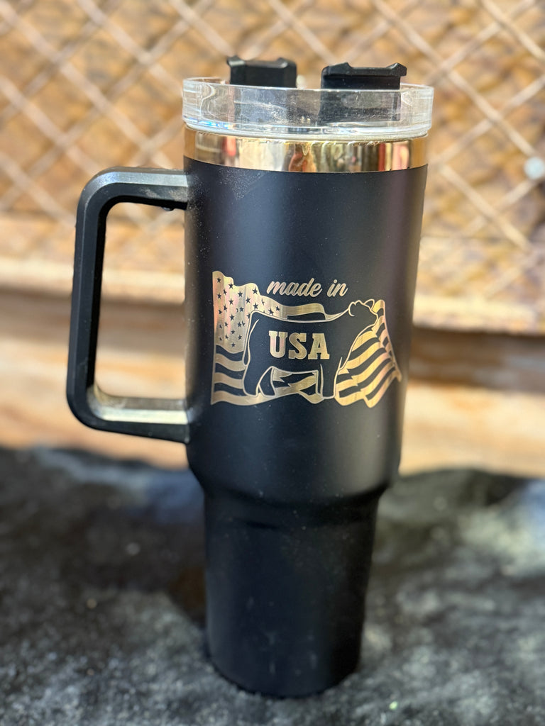 Custom Laser Engraved STEER Beef MADE IN THE USA 40oz TUMBLER Engraved LIVESTOCK SHOW