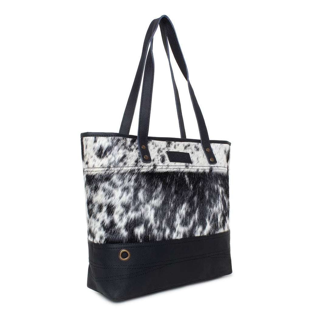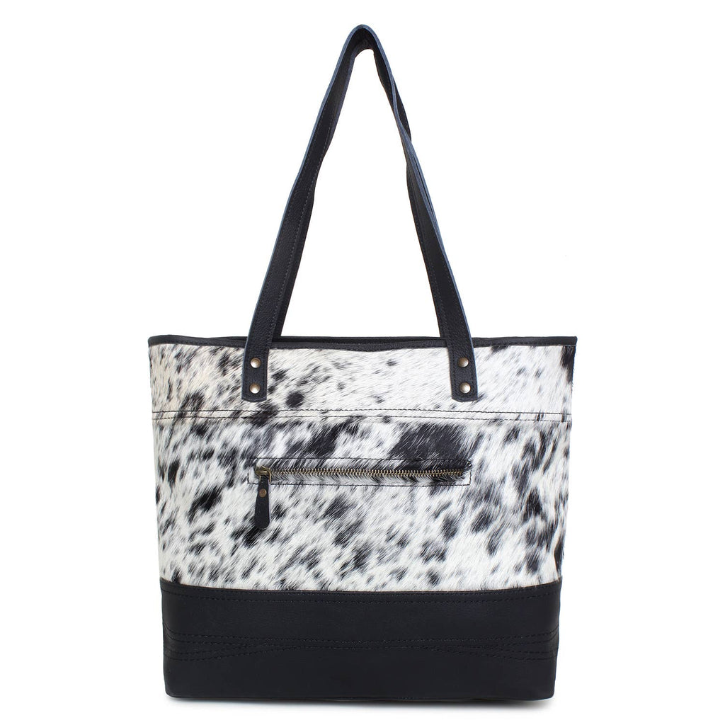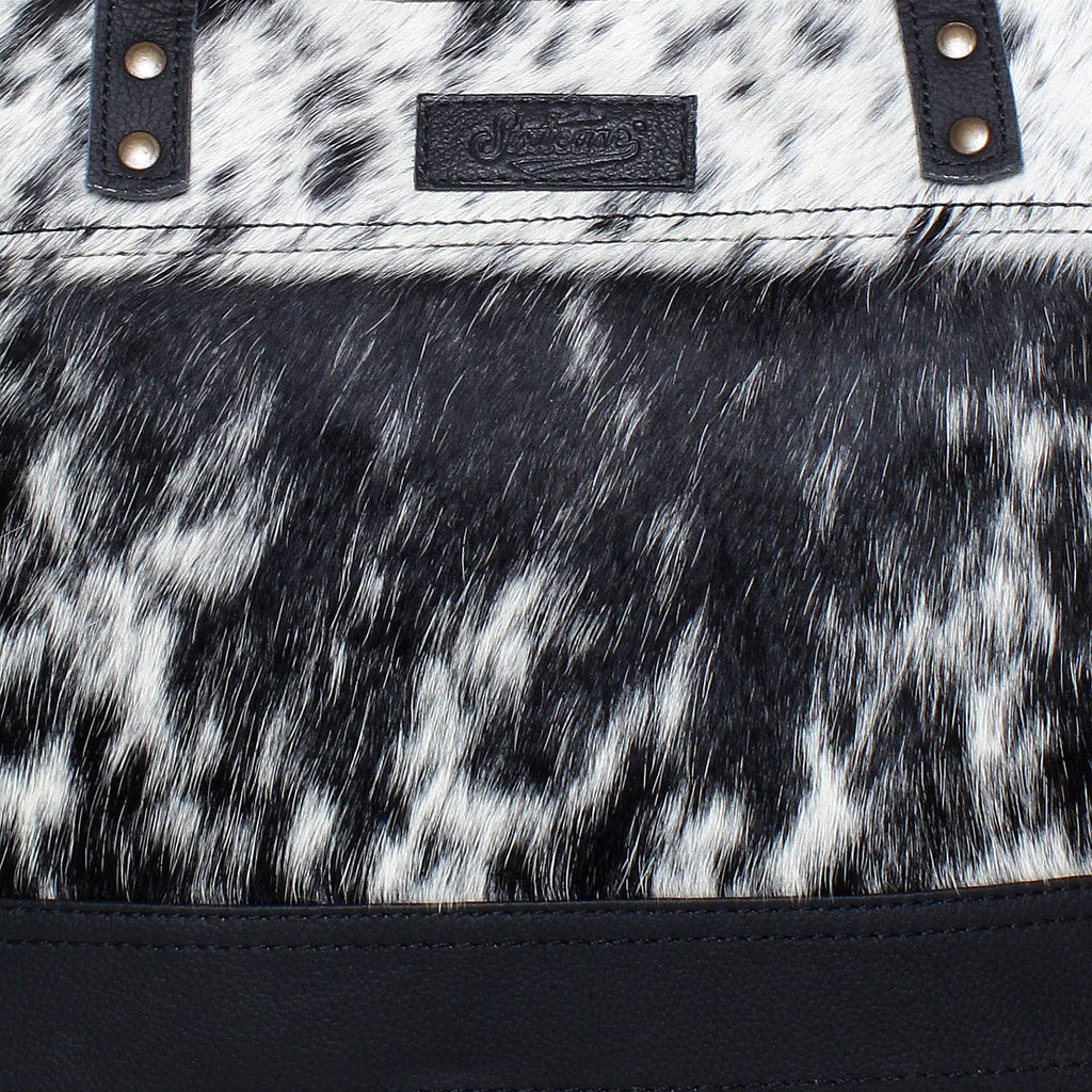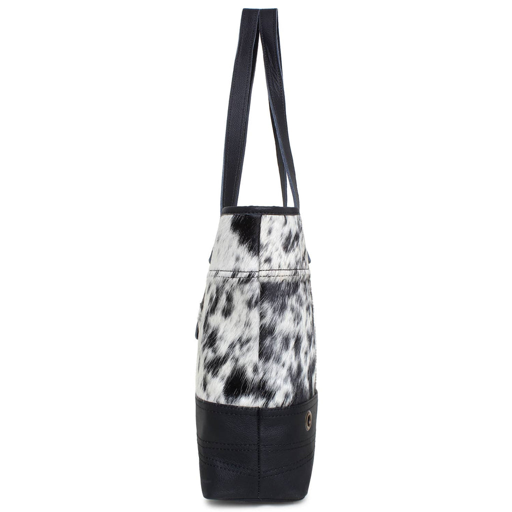 SB-2058 Black White Cowhide Leather Tote Bag Handbag Purse