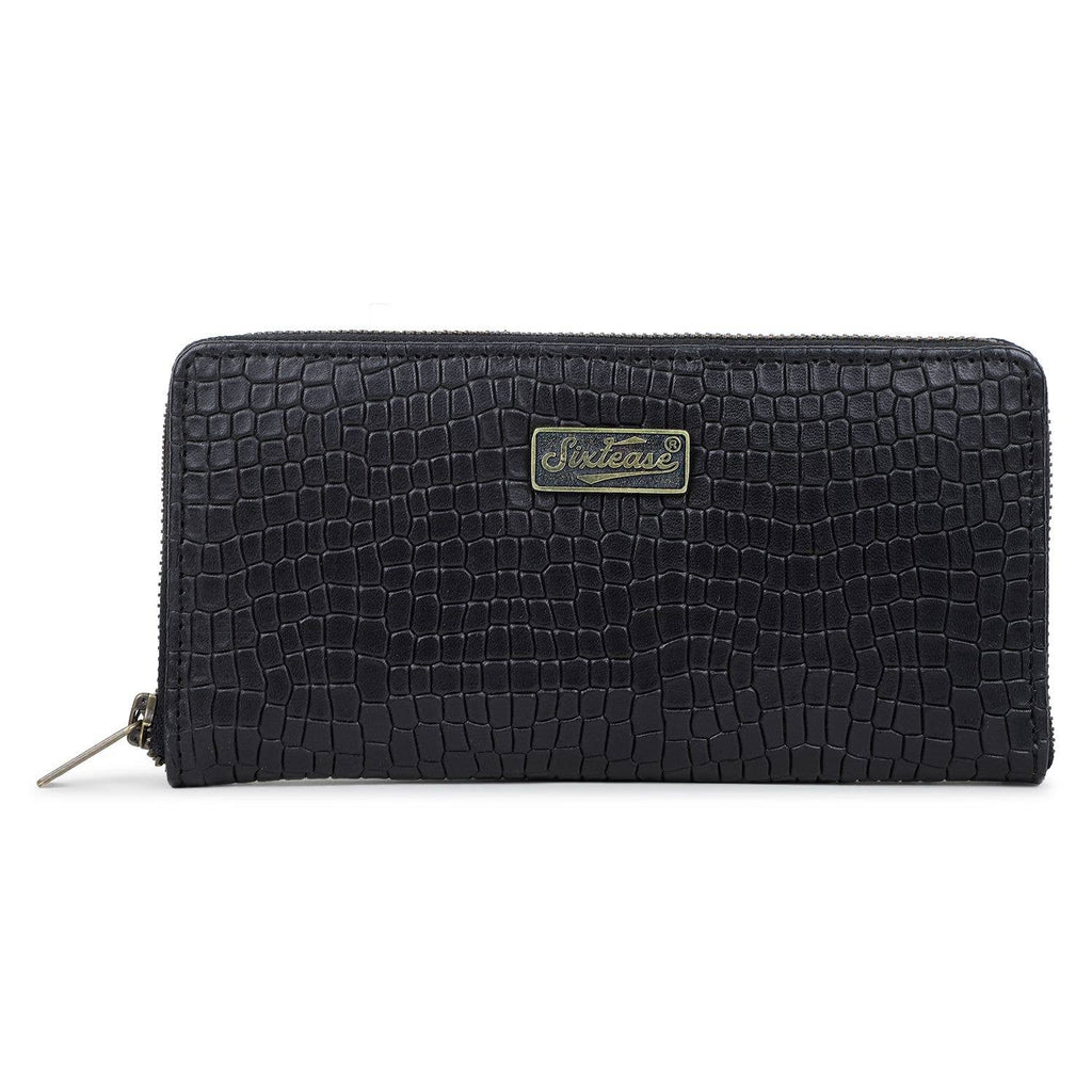 SB-6223 Leather Women's Wallet - Black Crocodile Textured Croc