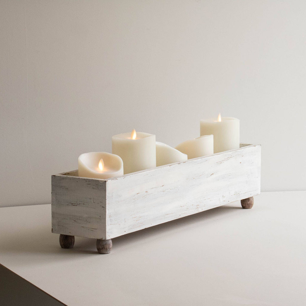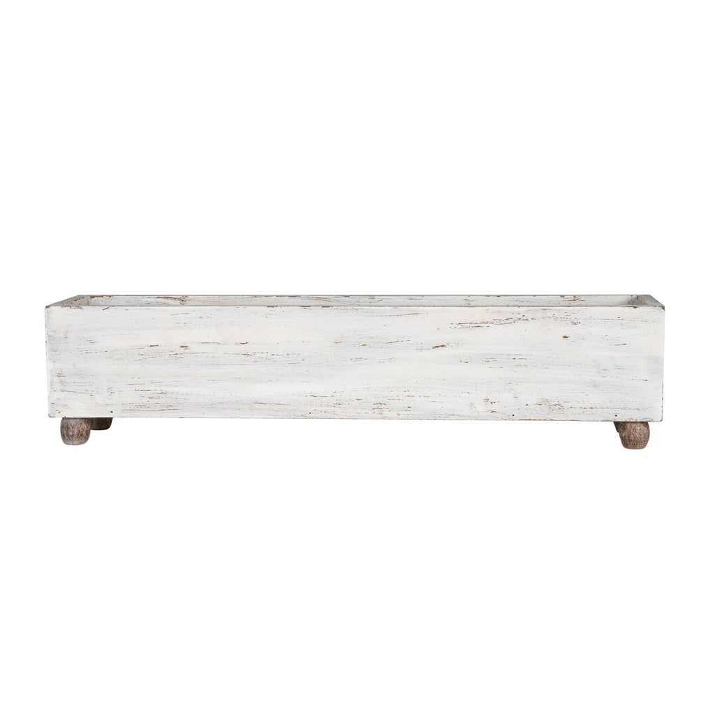 A trug style bin from Foreside Home & Garden that offers a traditional look with whitewashed wood, and modernized with wood ball feet to elevate. This piece is timeless and transitional while adding a special and refined point of interest to any space. The gorgeous whitewashed wood creates a charming centerpiece easily brought to life with candles or seasonal faux greenery. -Beautiful bin to hold all of your seasonal deco balls and decor, or a great spot for small objects like keys at the door. -Wooden ball feet add elevation. -Materials: Wood & Metal -Heavily whitewashed wood offers a dimensional look that is neutral and transitional. -This bin has a traditional and coastal vibe. -Perfect for Coastal Decor, Coastal Home Decor, Cottage Decor, Vintage Home Decor, Farmhouse Home Decor, Storage Containers, Decorative Storage, Storage Basket, Bin, Shelf Storage, Caddy, Bath Caddy *Does not come with decor inside it