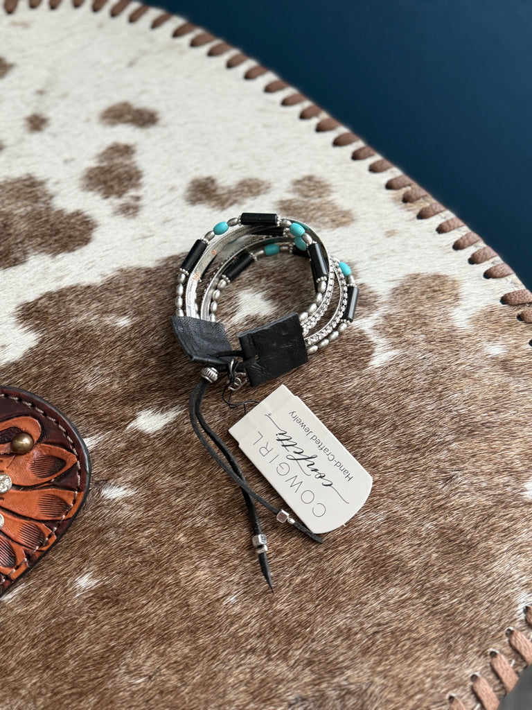Silver Turquoise Leather Simple Bliss Bracelet Cuff Cowgirl Confetti CCCUF145