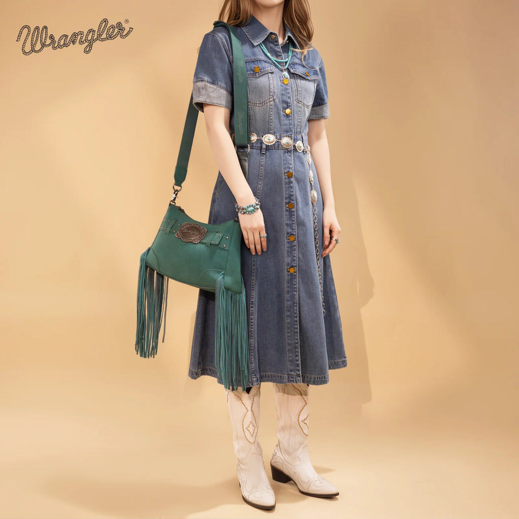 WG241-2022TQ Turquoise Wrangler Wrangler Fringe Buckle Hobo Bag Crossbody Purse