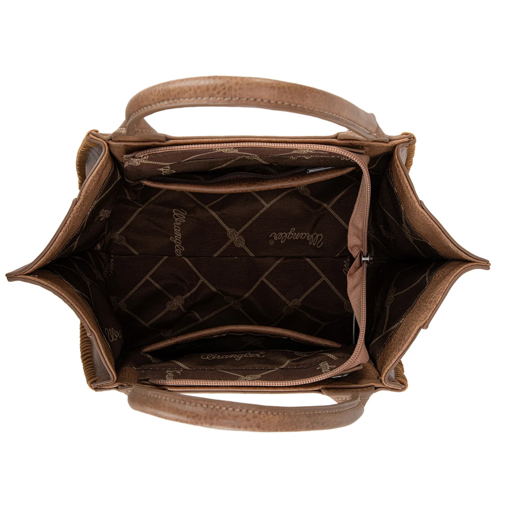 WRANGLER WG145G-8300 KHAKI CCW Embroidered Trapezoid Floral Tooled Crossbody CONCEALED CARRY Tote Purse