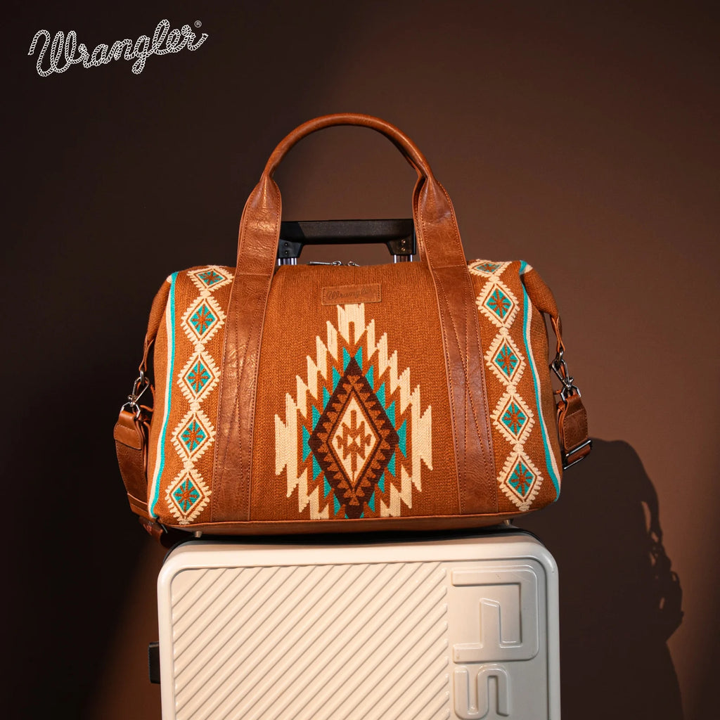 Wrangler WG174-5110BR Brown Aztec Duffle Bag Knitted Weekender Tote